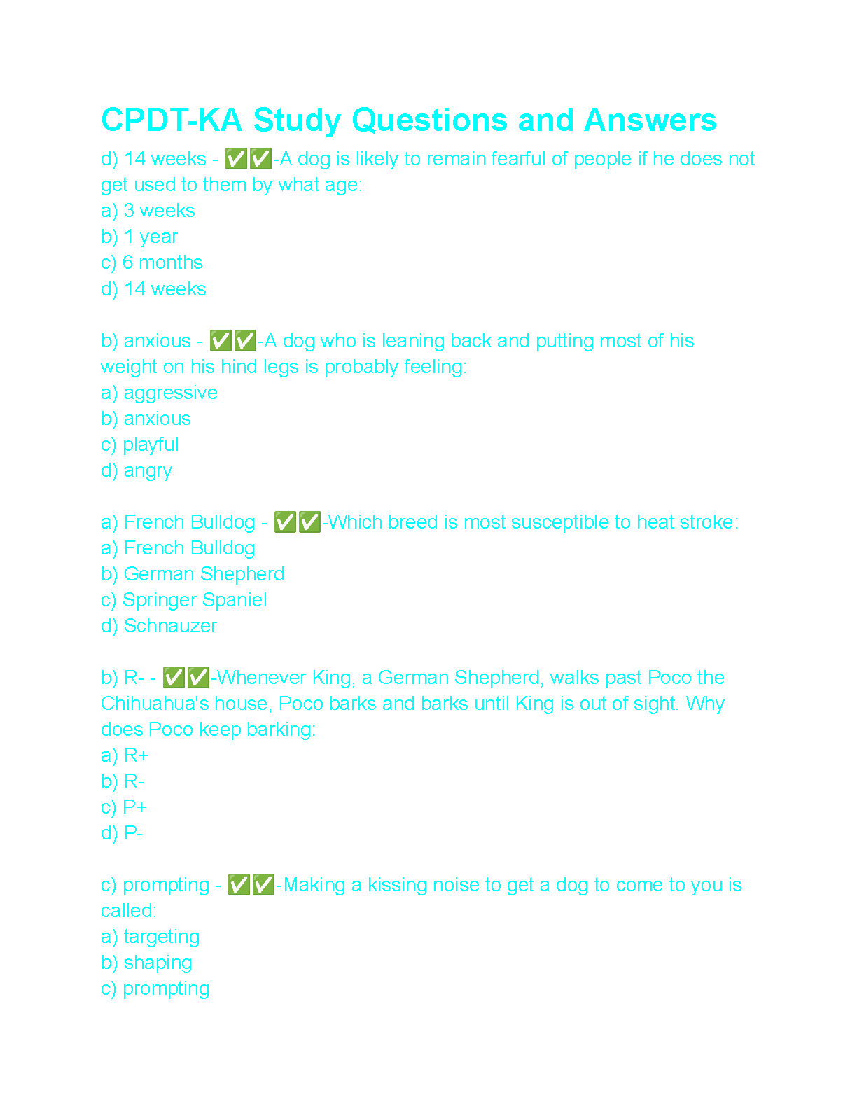 CPDT-KA Study Questions and Answers: Ace Your Exam with 2024/2025 Edition