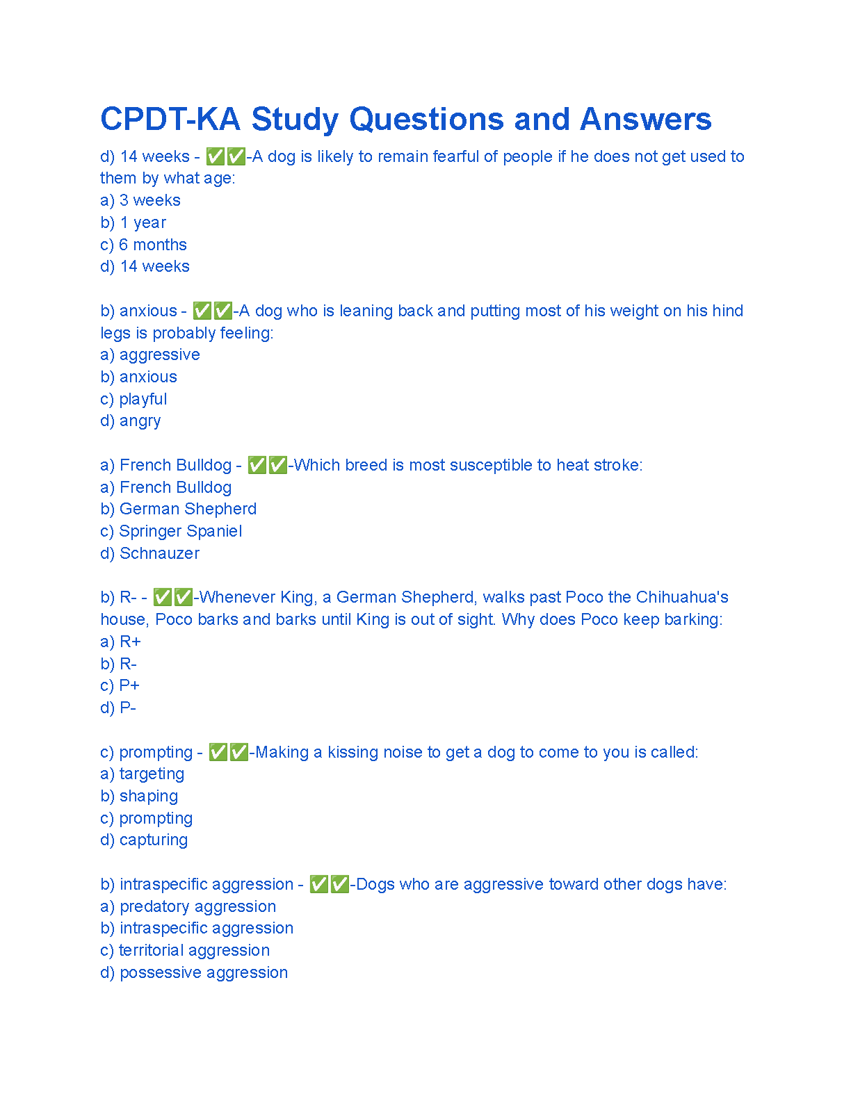 Ace your CPDT-KA exam on the first try with this comprehensive study guide. This resource features a collection of practice questions and answers covering key concepts, ensuring you're fully prepared for exam day. Boost your confidence and avoid resits with this invaluable resource, designed for the 2024/2025 academic year.