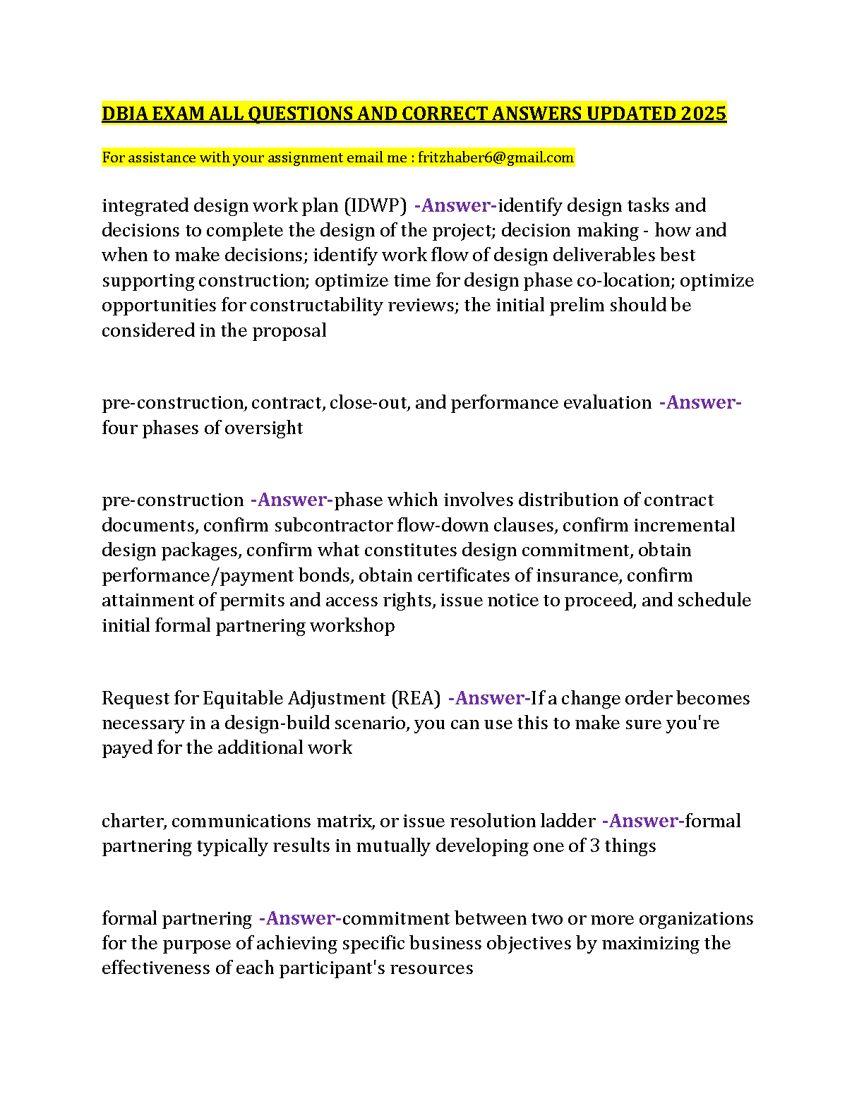 DBIA Exam All Questions and Correct Answers Updated 2025