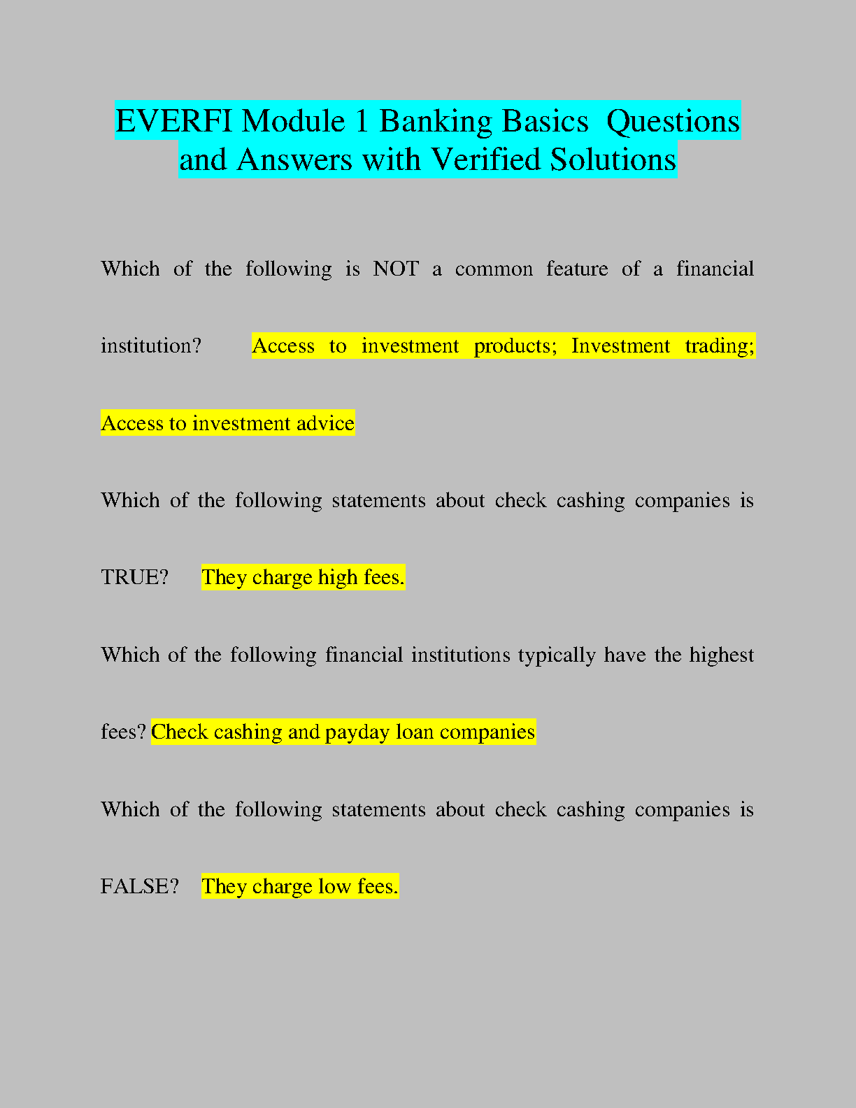 EVERFI Module 1 Banking Basics Questions and Answers with Verified Solutions: Ace Your Exam in 2024/2025