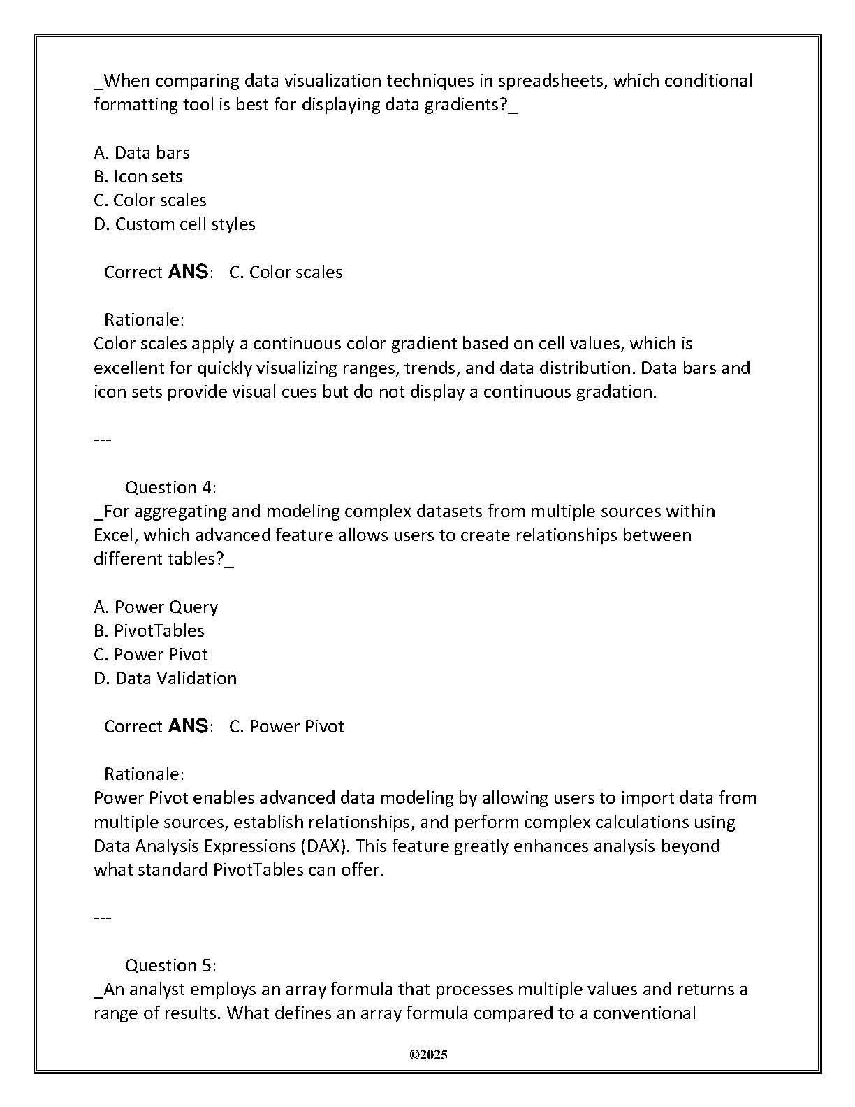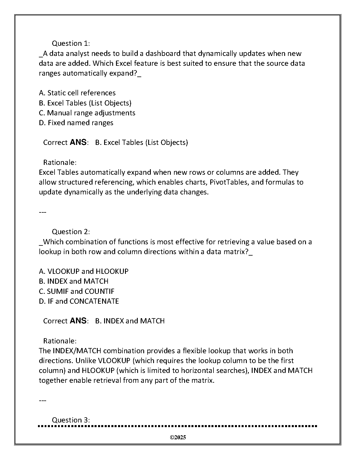 WGU D388 BUS 2250 Fundamentals of Spreadsheets & Data Presentation: 2025 Edition - Objective Assessment Review
