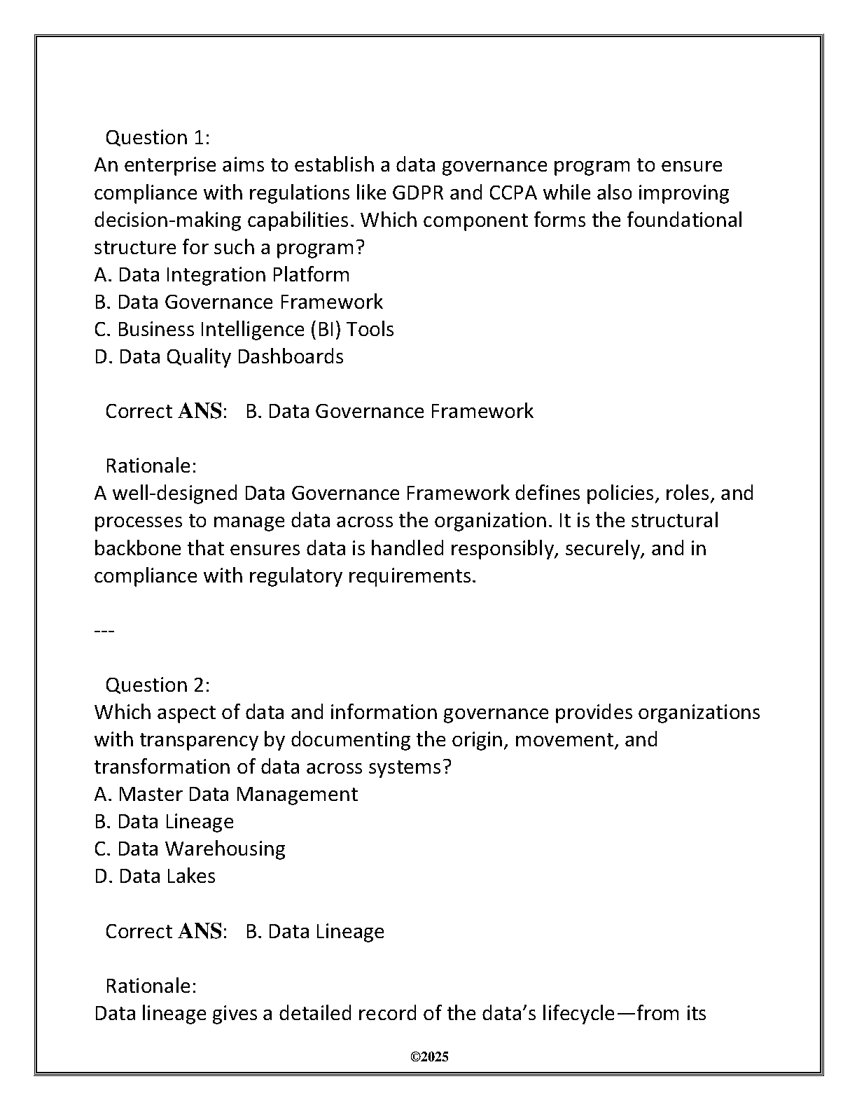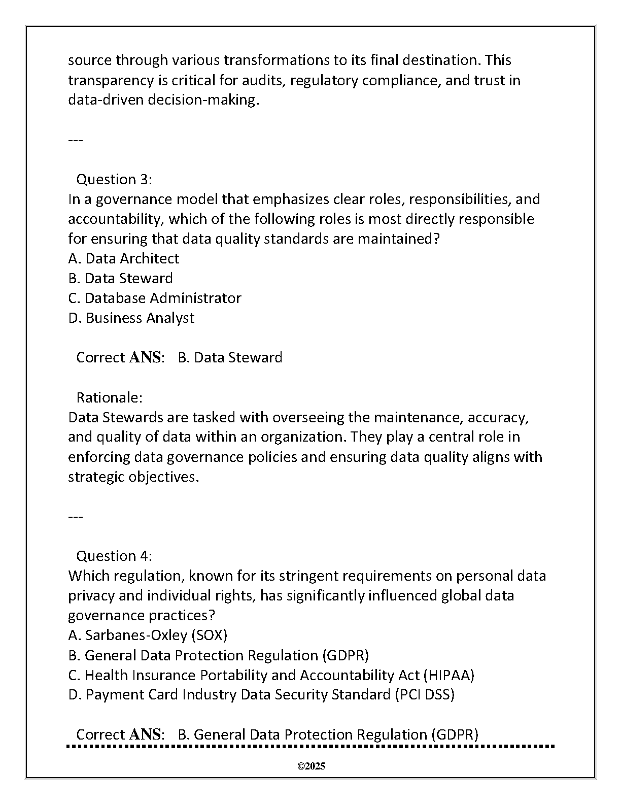 WGU D494 DTMG 3351 Data & Information Governance 2024-2025: Objective Assessment Review with Answers