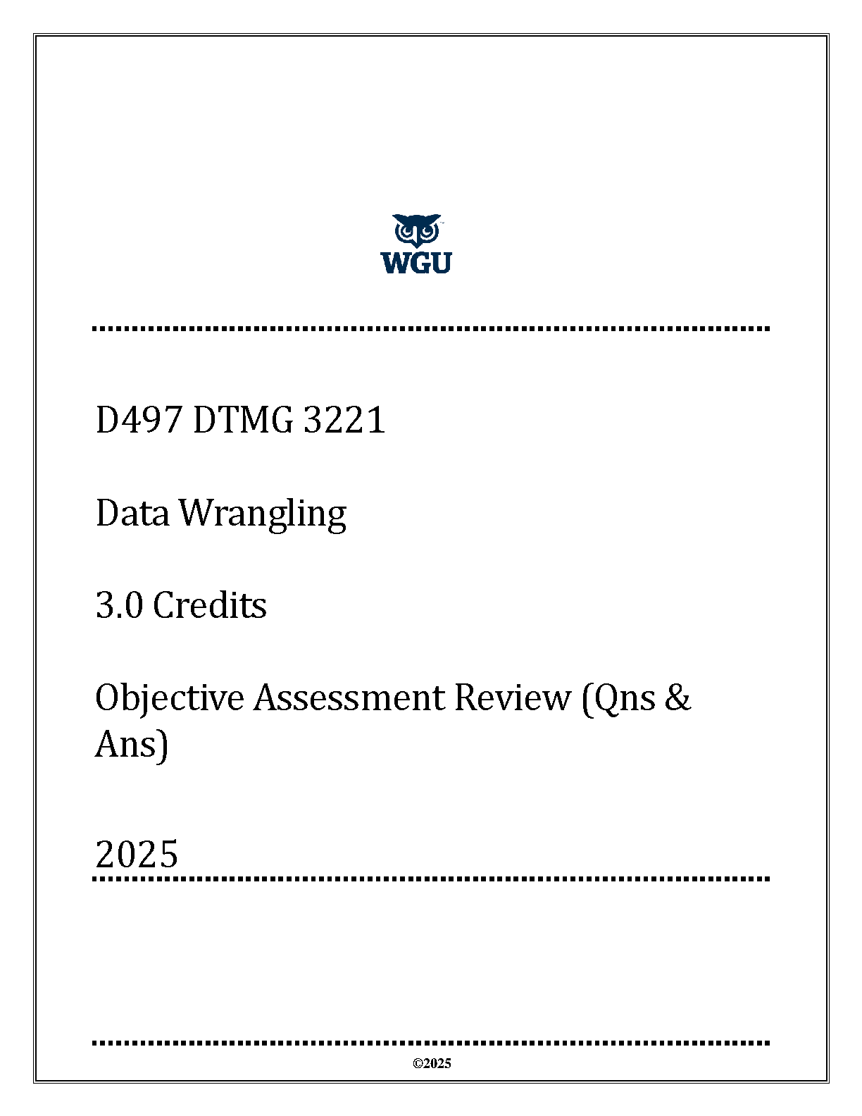 Ace your WGU D497 Data Wrangling exam on your first attempt with this comprehensive objective assessment review, designed specifically for the 2024-2025 academic year. This resource contains questions and answers to help you master the course material and avoid resits. Prepare for success with our exam-focused study guide.