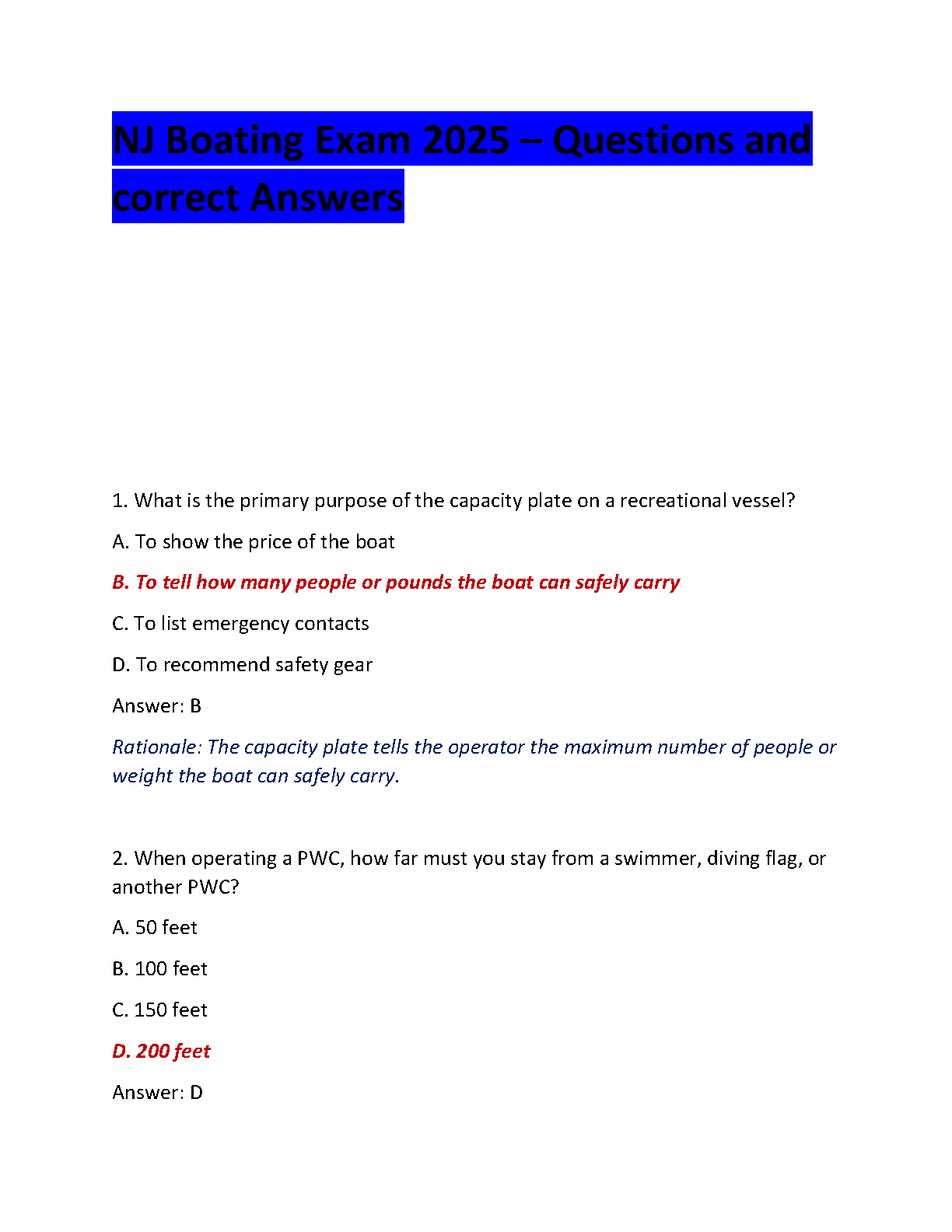 NJ Boating Exam 2025 Questions and Answers: Ace Your Exam on the First Try!