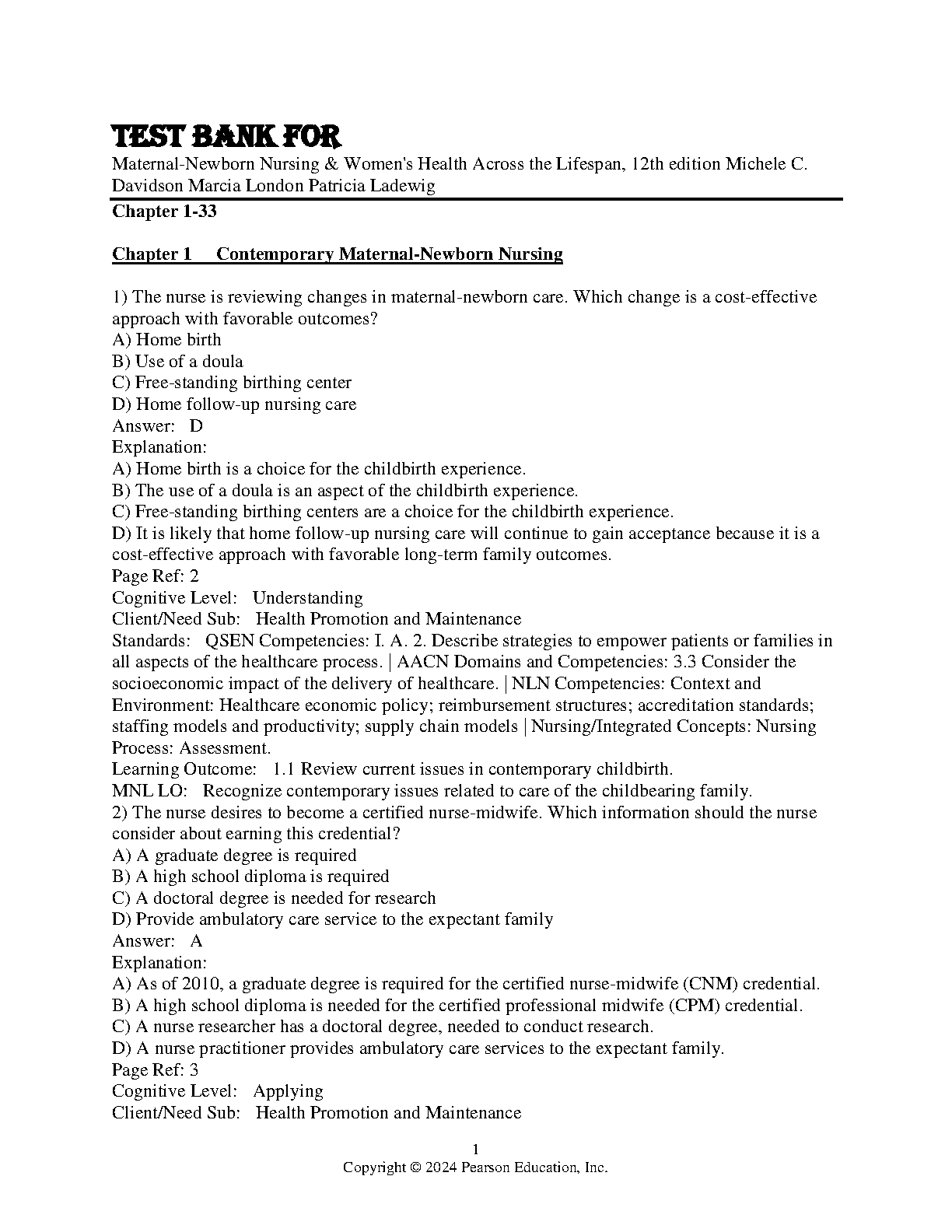 OLDS' Maternal-Newborn Nursing & Women's Health Across the Lifespan, 12th Edition Test Bank by Michele Davidson, Marcia London, and Patricia Ladewig