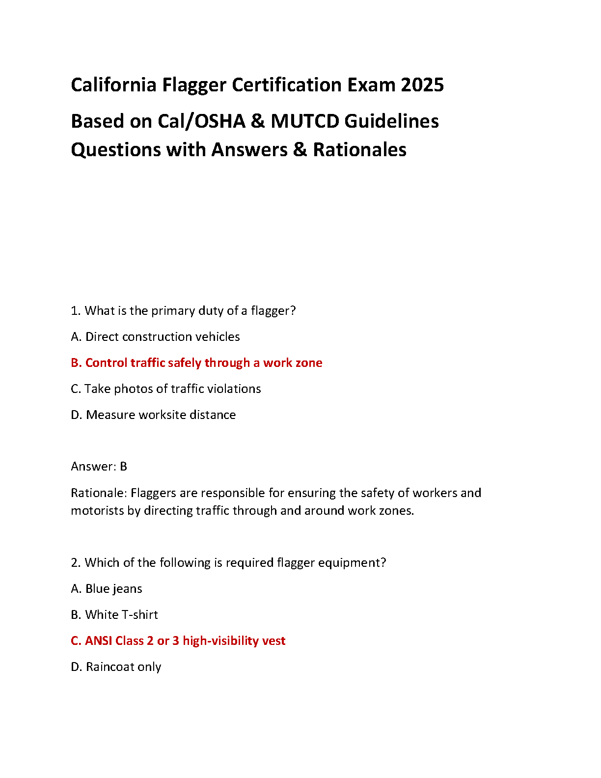 California Flagger Certification Exam 2025: Questions, Answers & Rationales - Pass Your Exam on the First Try!