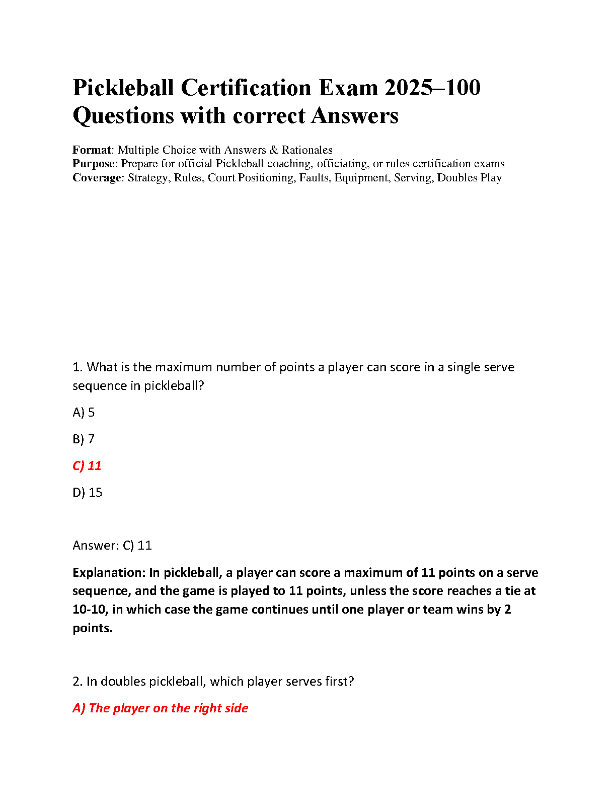 Ace your Pickleball Certification Exam with this comprehensive 2025 edition practice resource. Featuring 100 multiple-choice questions with detailed answers and rationales, this guide covers all aspects of the exam, including strategy, rules, court positioning, faults, equipment, serving, and doubles play. Prepare effectively for official Pickleball coaching, officiating, or rules certification exams and pass on your first attempt.