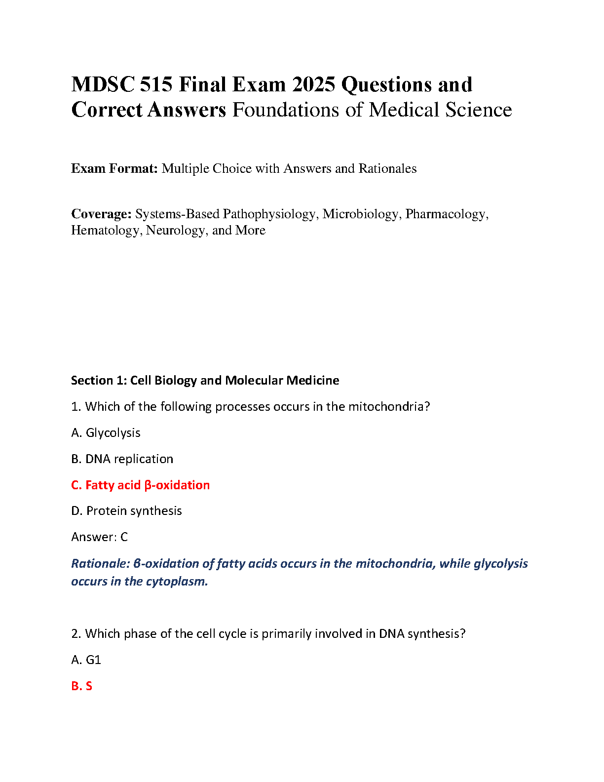 MDSC 515 Final Exam 2025: Questions and Answers - Foundations of Medical Science