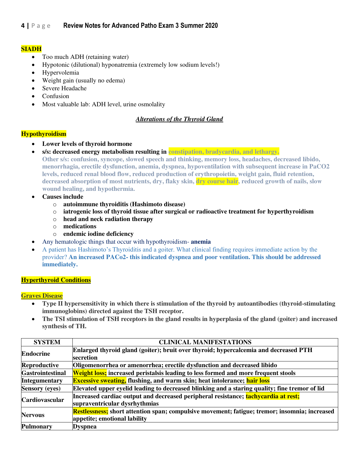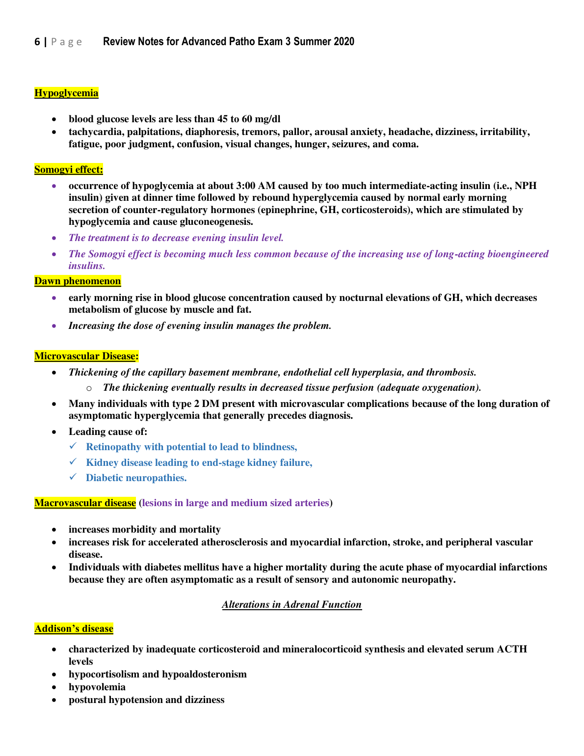 Review Notes for Advanced Patho Exam 3 Summer UPDATED AND REVIEWED FOR 2023/2024