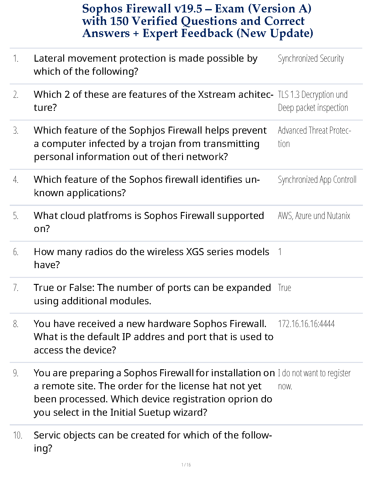 Sophos Firewall v19.5 Exam (Version A): 150 Verified Questions and Answers with Expert Feedback (New 2024/2025 Update)