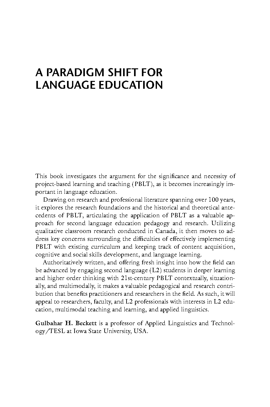 A Paradigm Shift for Language Education: Project-Based Learning and Teaching by Gulbahar H. Beckett