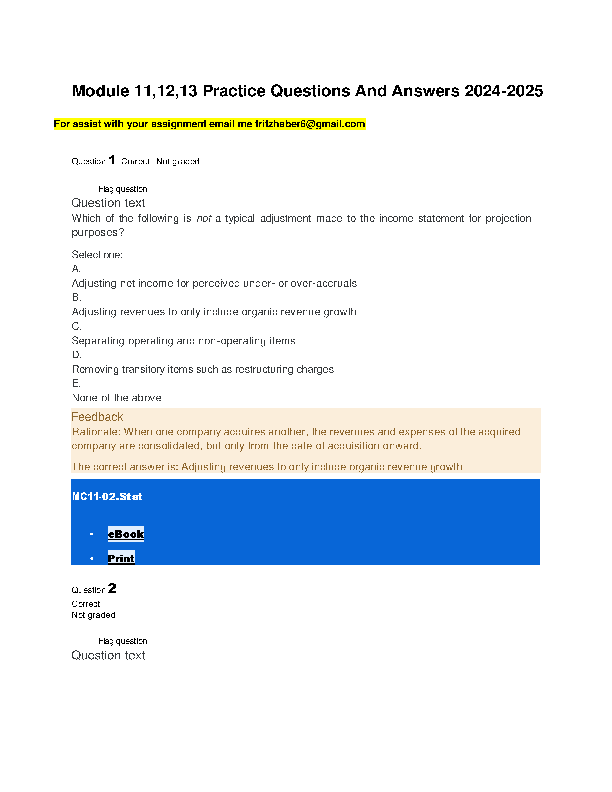 Ace your exams on the first attempt with this comprehensive set of practice questions and answers for Modules 11, 12, and 13. These questions are designed to help students master the material and avoid resits. Ideal for the 2024-2025 academic year.