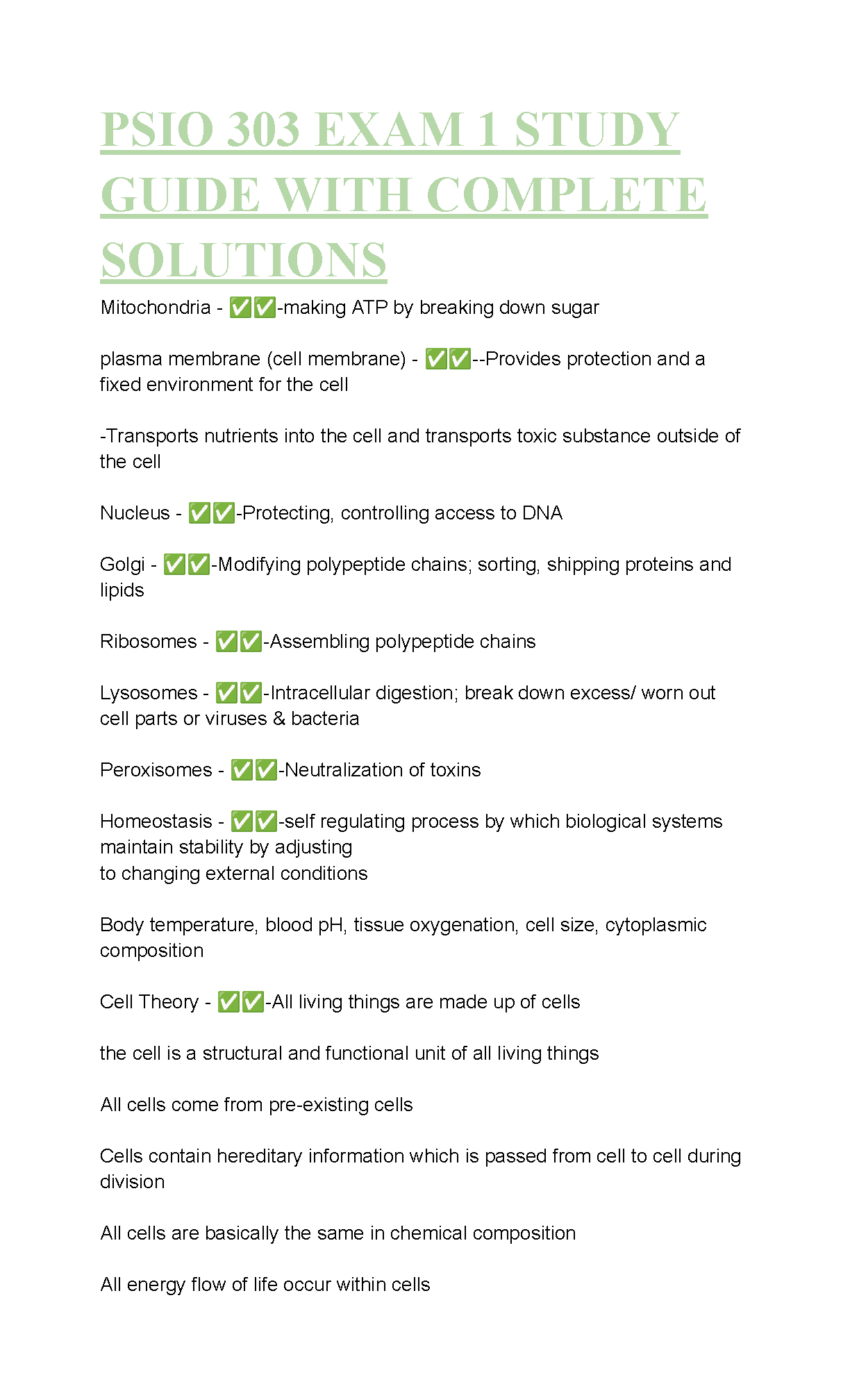 Ace your PSIO 303 Exam 1 with this comprehensive study guide, providing complete solutions to help you master the concepts and pass on your first try, avoiding resits. Designed for the 2024/2025 academic year.