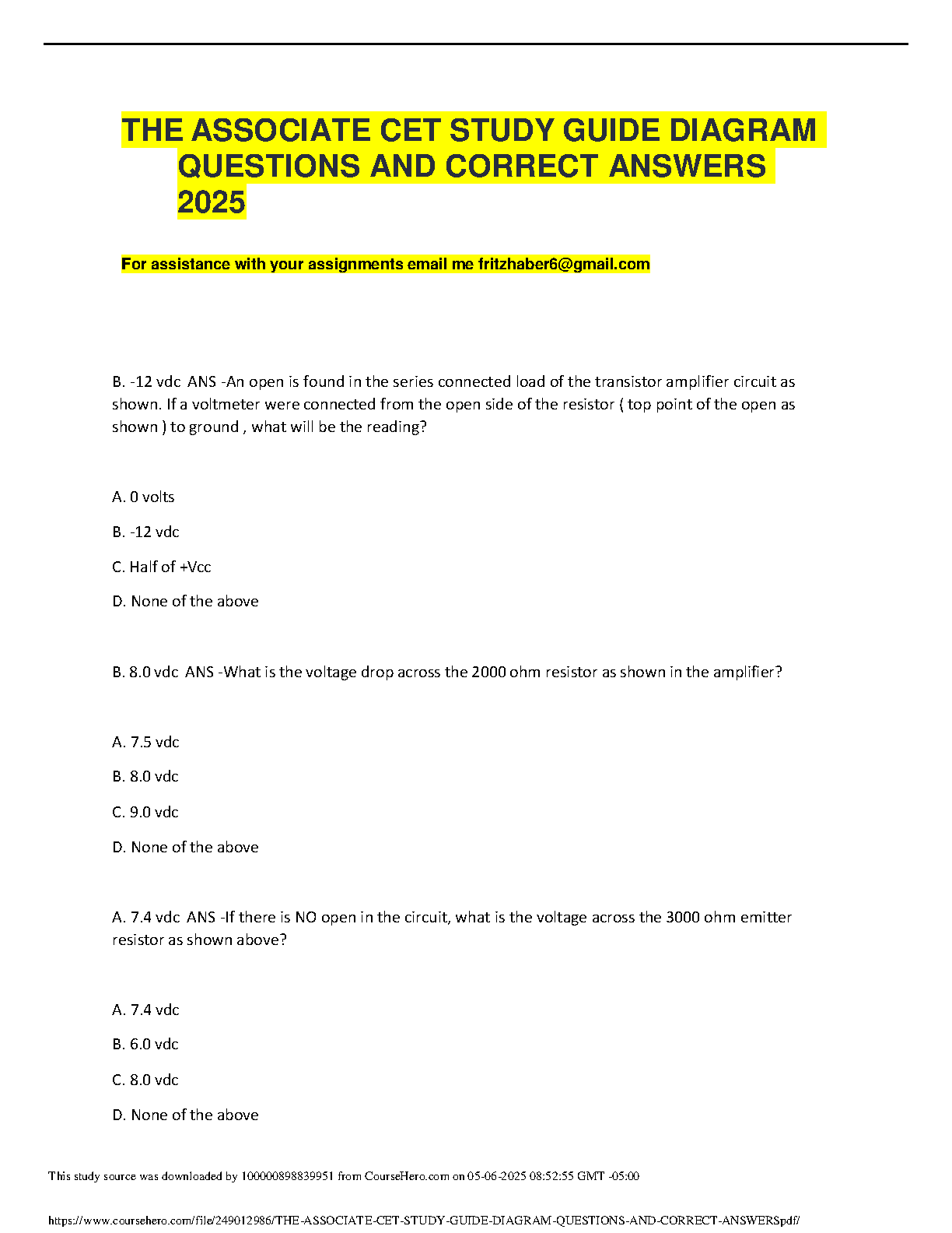 2025 Associate CET Study Guide Diagram Questions and Correct Answers