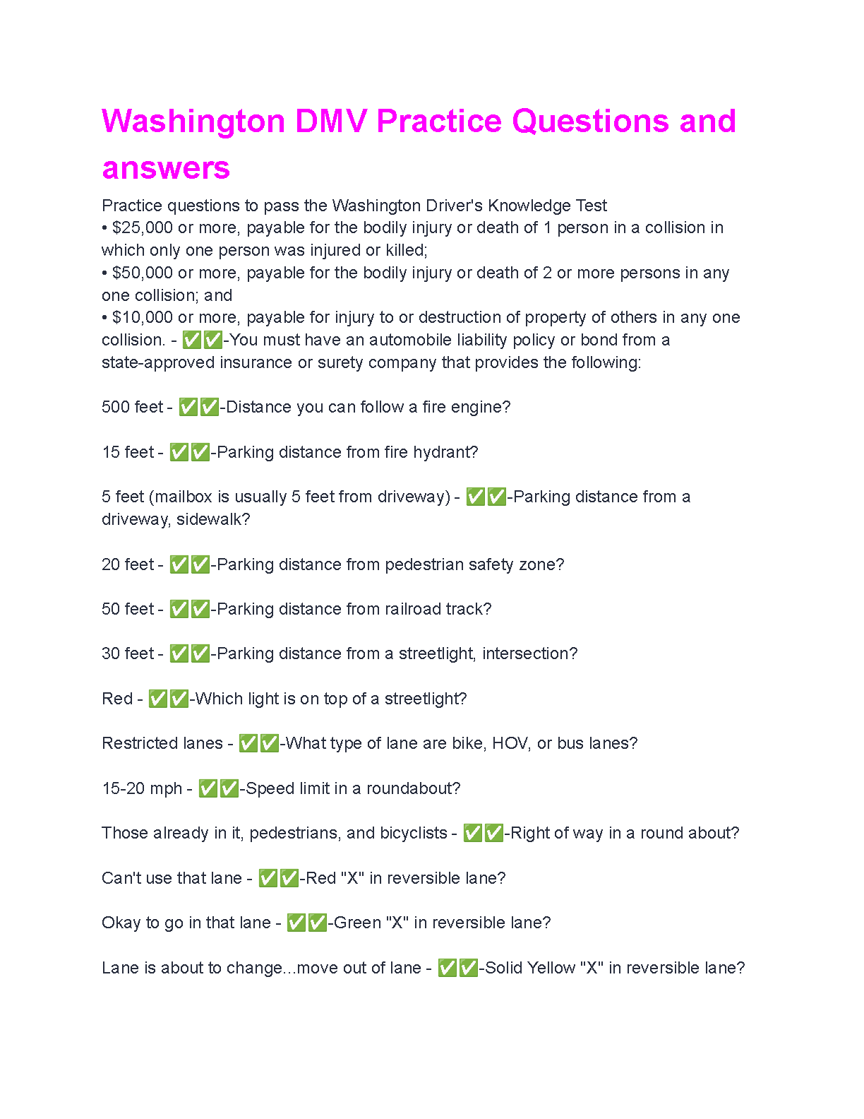Ace your Washington State DMV Driver's Knowledge Test on your first try with this comprehensive 2024/2025 practice question and answer guide. Designed to help you avoid resits, this resource covers essential topics and provides detailed explanations, ensuring you are well-prepared for exam day. Master traffic laws, road signs, and safety regulations with confidence.