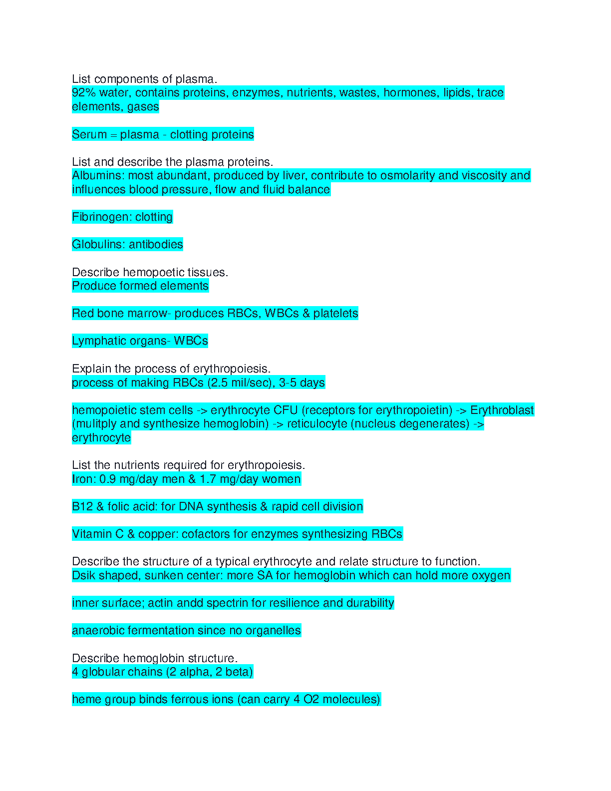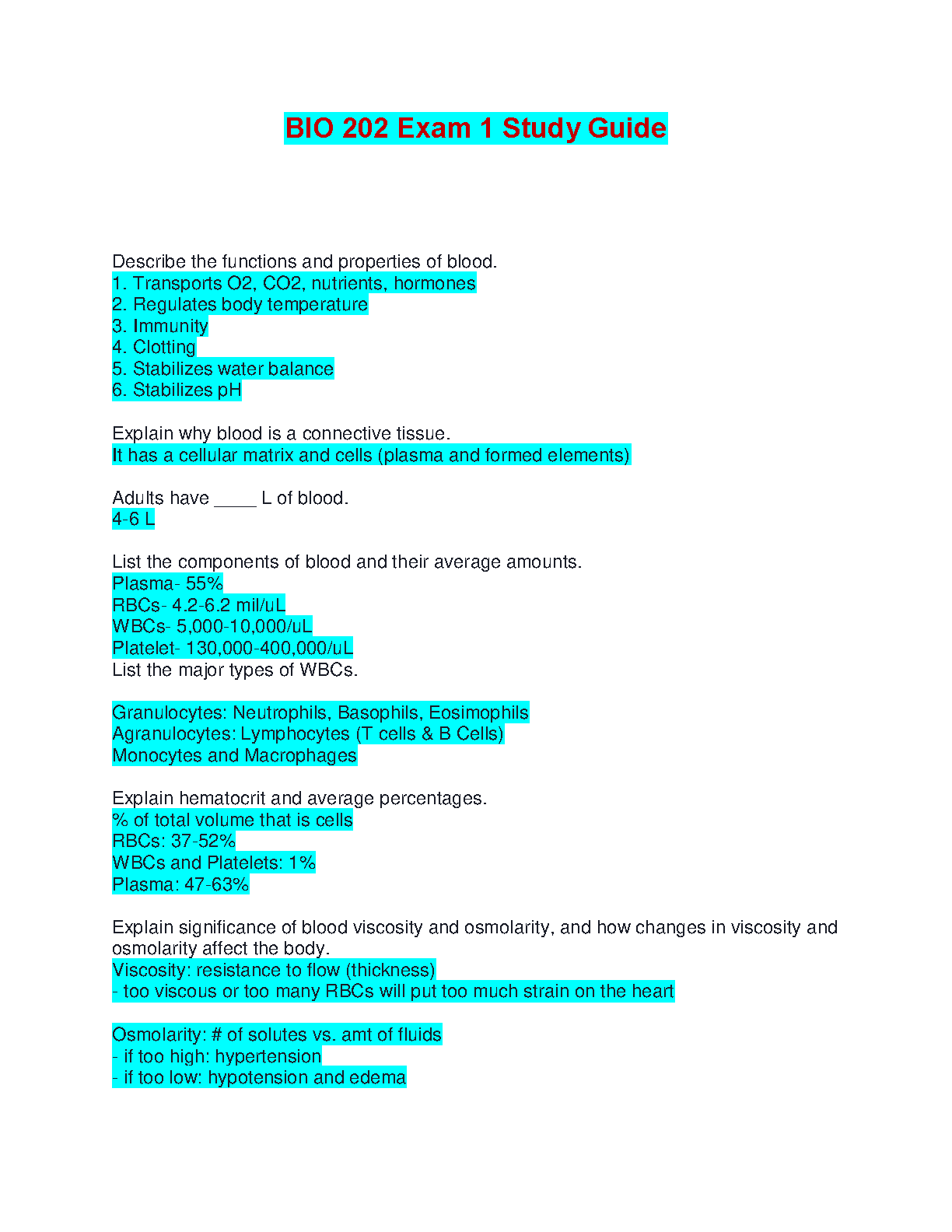 Ace your BIO 202 Exam 1 with this expertly crafted study guide, designed to help you pass on your first try and avoid resits. This resource covers key concepts, including blood functions, composition, and hematocrit, as well as blood viscosity and osmolarity. Prepare effectively for the 2024/2025 academic year.