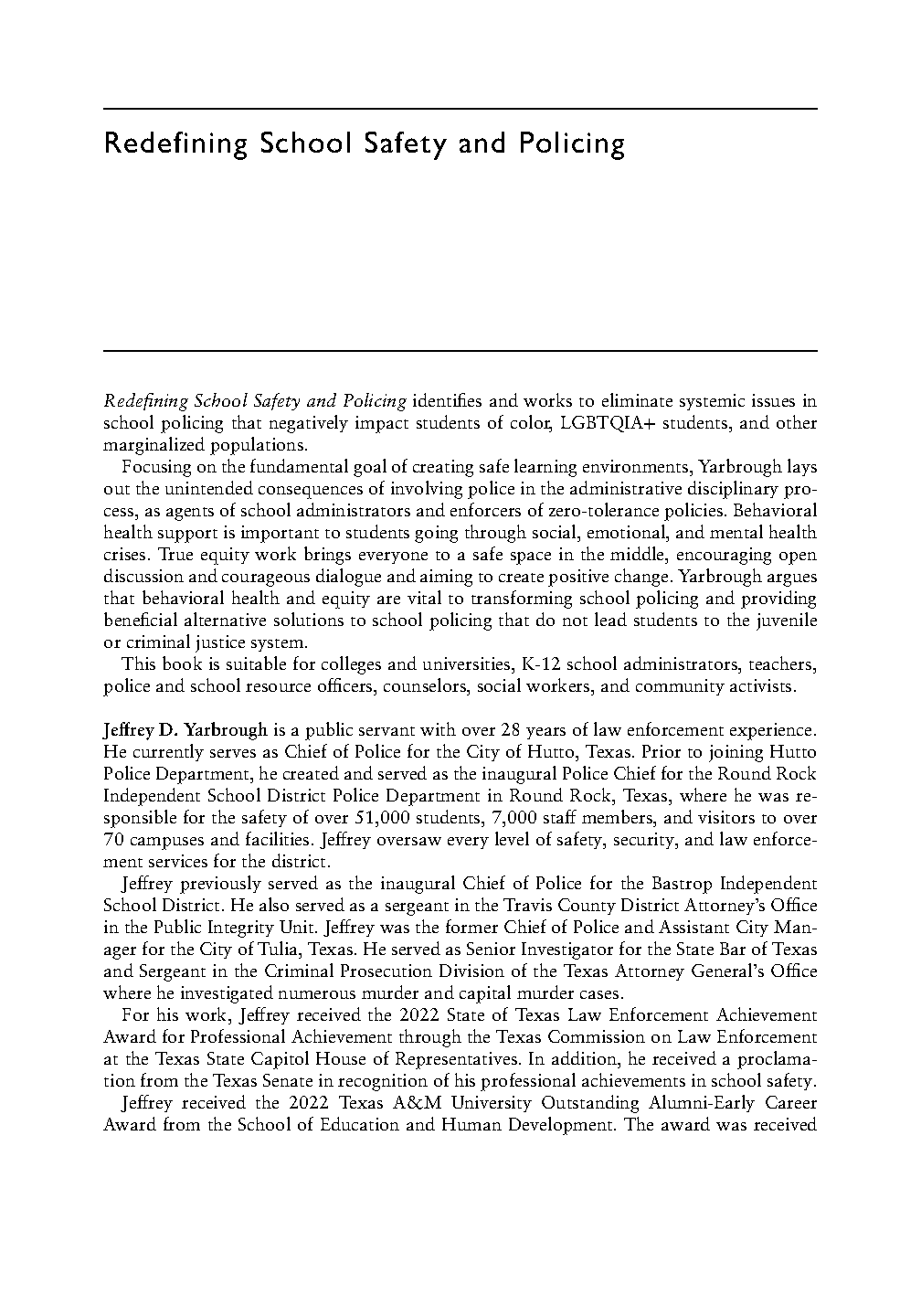 Redefining School Safety and Policing: A Transformative Four-Pillar Model (2024 Edition) by Jeffrey D. Yarbrough