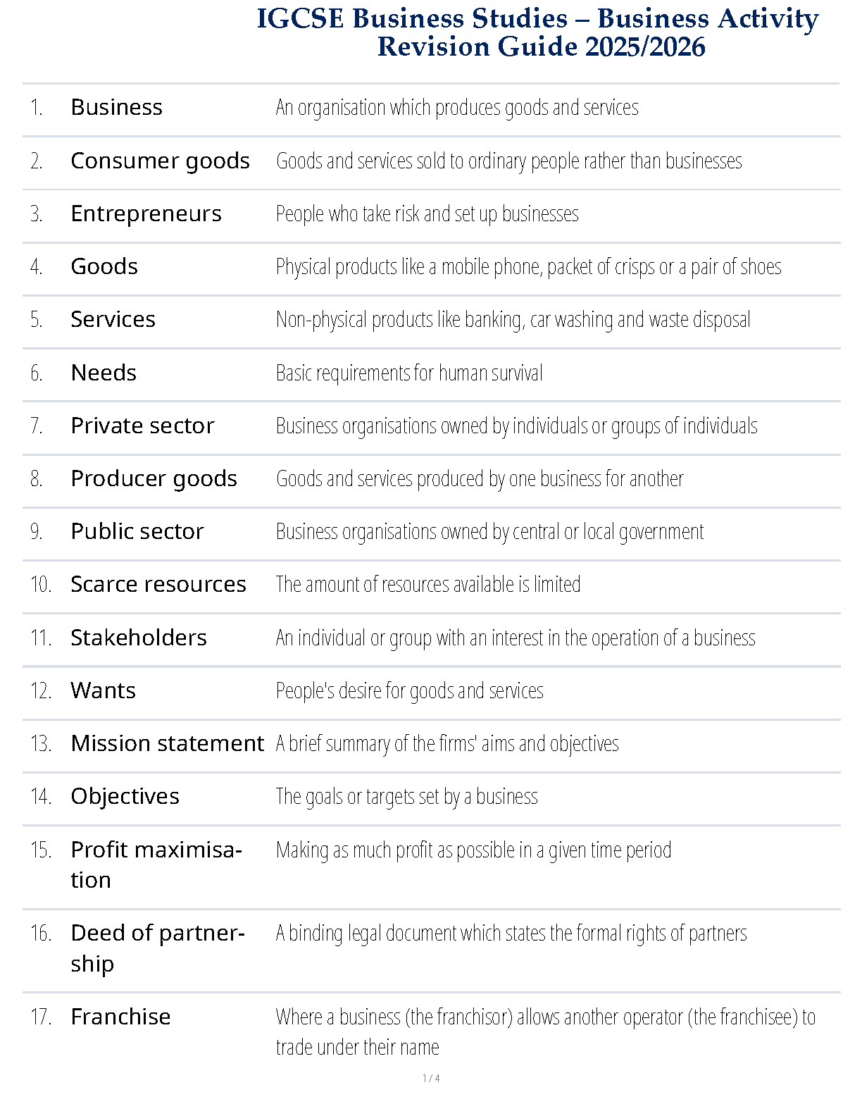 Master IGCSE Business Studies with this comprehensive 2025/2026 revision guide. Designed to help students achieve exam success on their first attempt, this resource covers key concepts, definitions and examples. Prepare thoroughly and avoid resits!