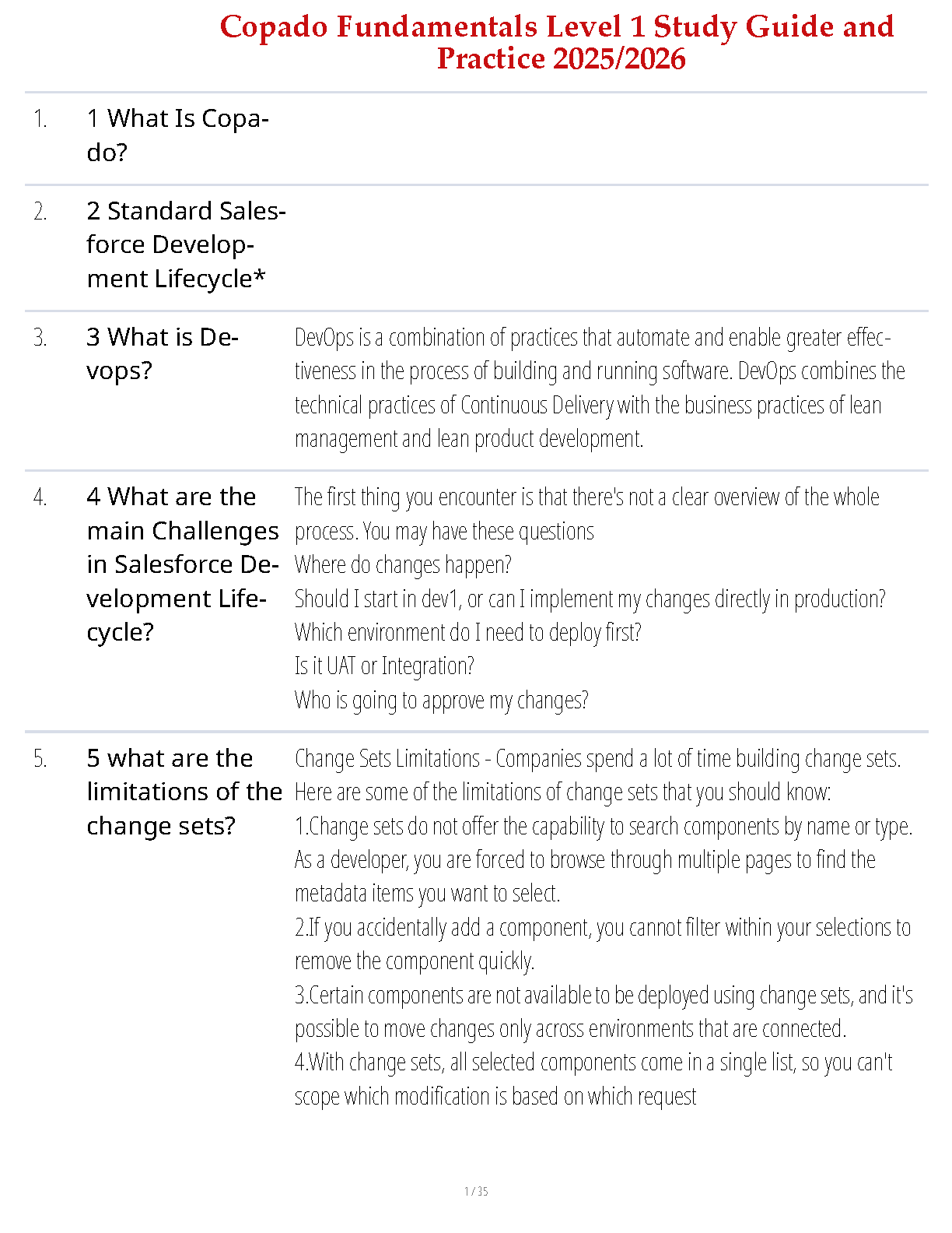 Master Copado Fundamentals Level 1 with this comprehensive study guide and practice exercises designed for the 2025/2026 academic year. Prepare effectively for your exams and avoid resits by utilizing this resource, covering key concepts and challenges in Salesforce development and DevOps.