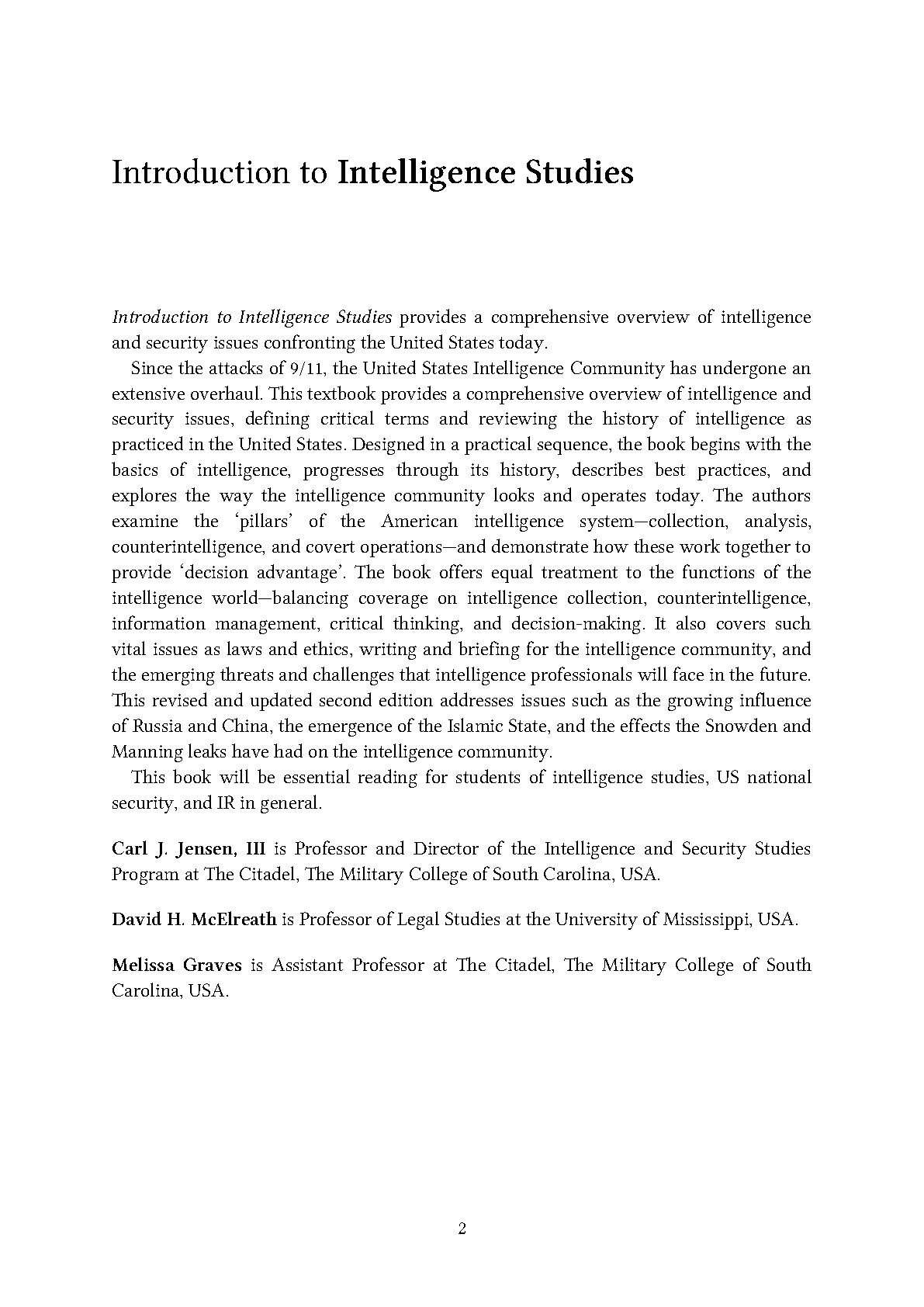 Introduction to Intelligence Studies, Second Edition by Carl J. Jensen III, David H. McElreath, and Melissa Graves