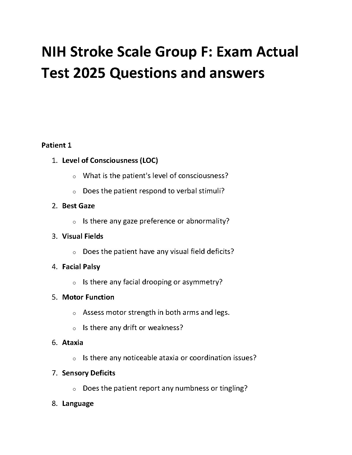 NIH Stroke Scale Group F Exam Actual Test 2025 Questions and Answers