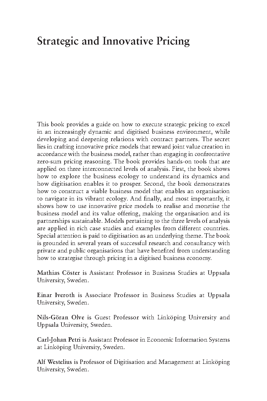 Strategic and Innovative Pricing: Price Models for a Digital Economy (1st Edition) by Mathias Cöster, Einar Iveroth, Nils-Göran Olve, Carl-Johan Petri, and Alf Westelius