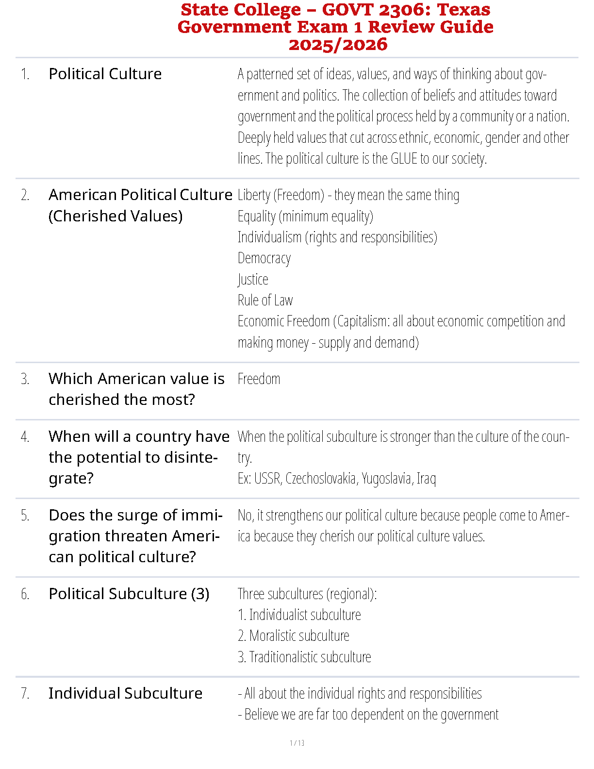 Texas Government Exam 1 Review Guide 2025/2026: Ace Your Exam on the First Attempt