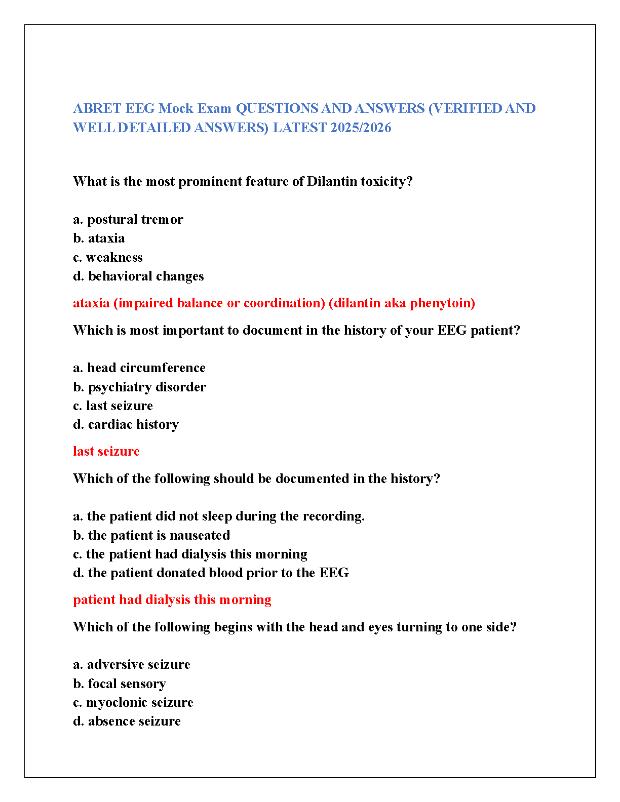 ABRET EEG Mock Exam Questions and Answers (Verified and Well-Detailed Answers) - Latest 2025/2026 Edition