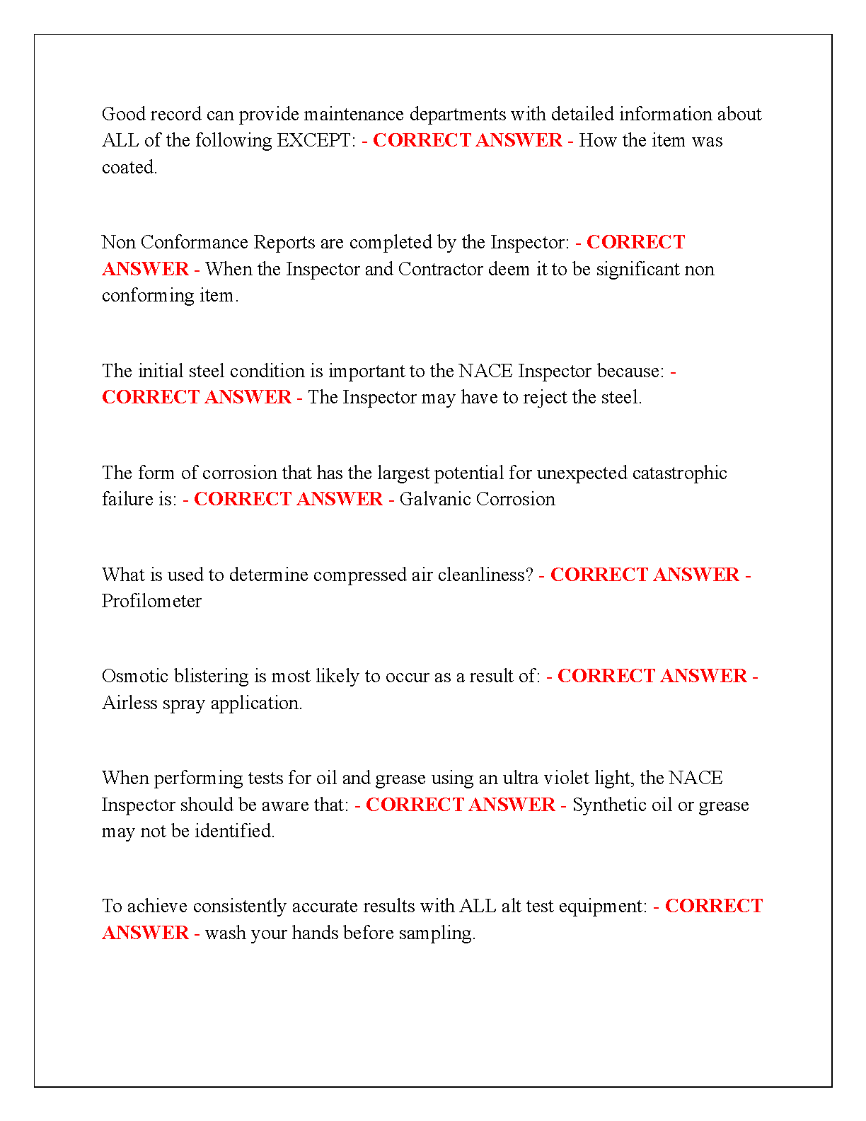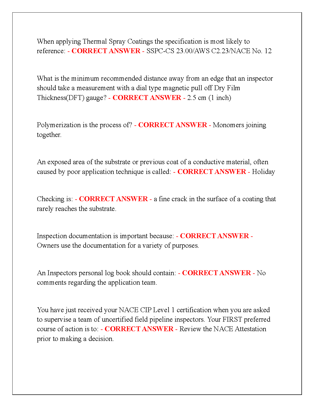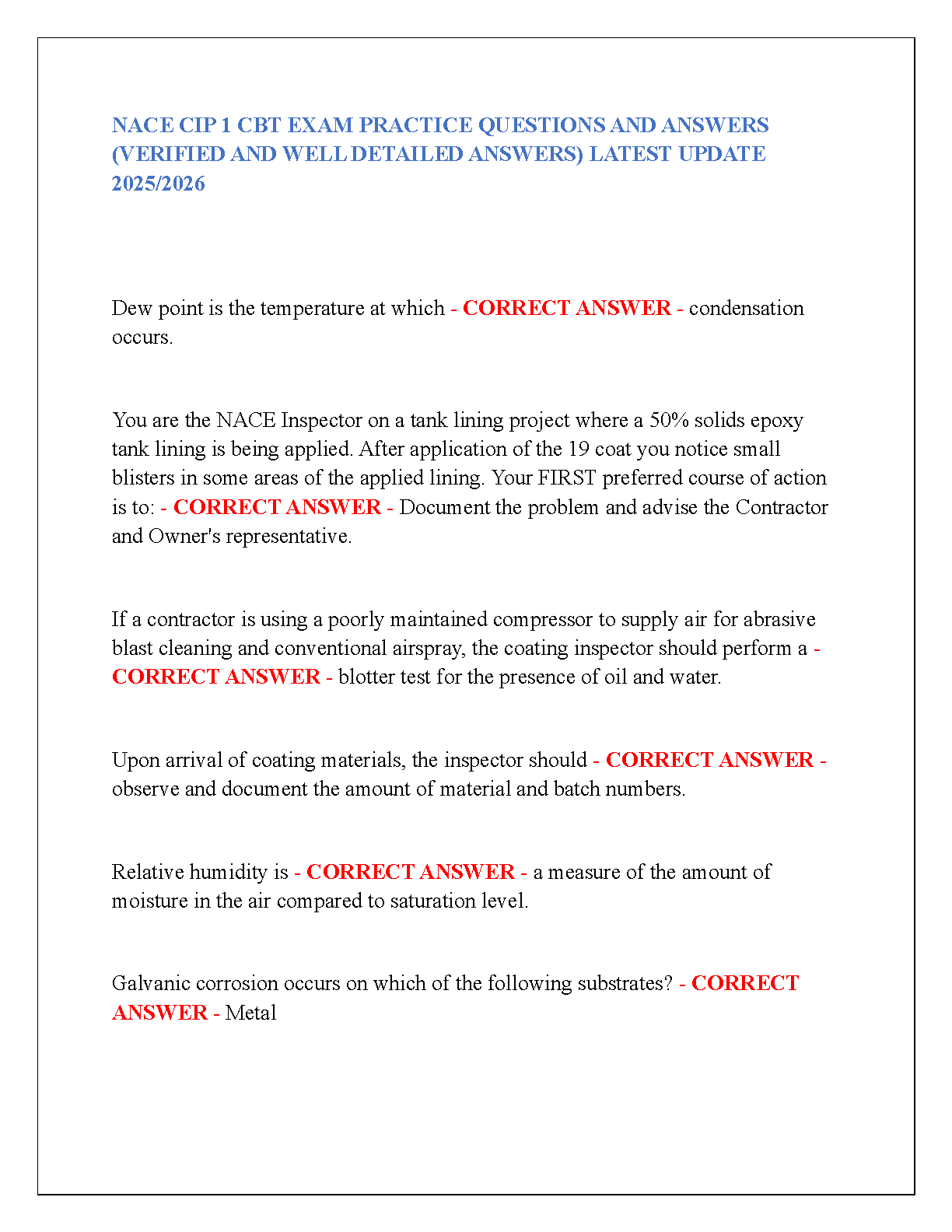 NACE CIP 1 CBT Exam Practice Questions and Answers 2025/2026 Edition: Verified and Well-Detailed Answers for First-Attempt Exam Success