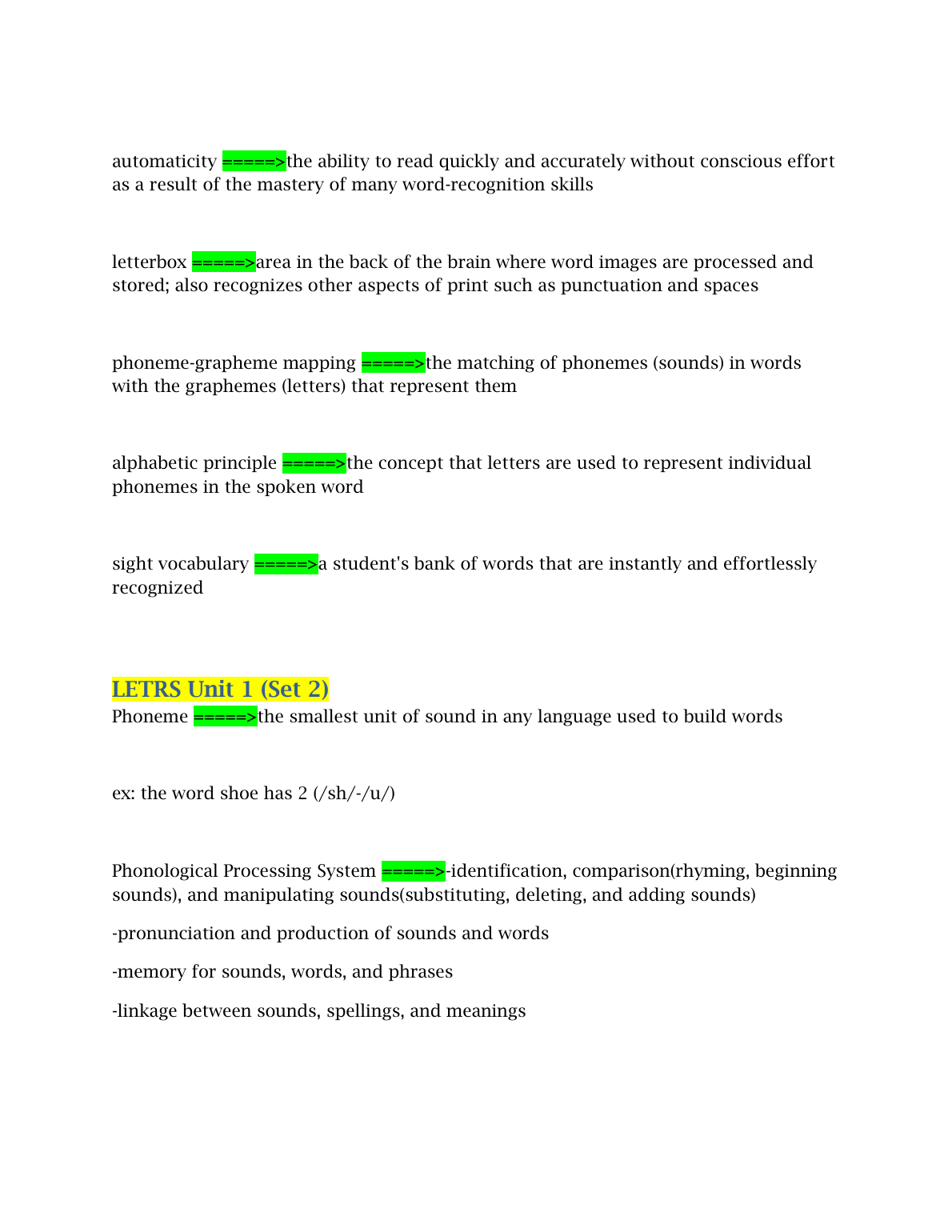 LETRS Unit 1 (Set 1 & Set 2) QUESTIONS AND ANSWERS. GRADED A+