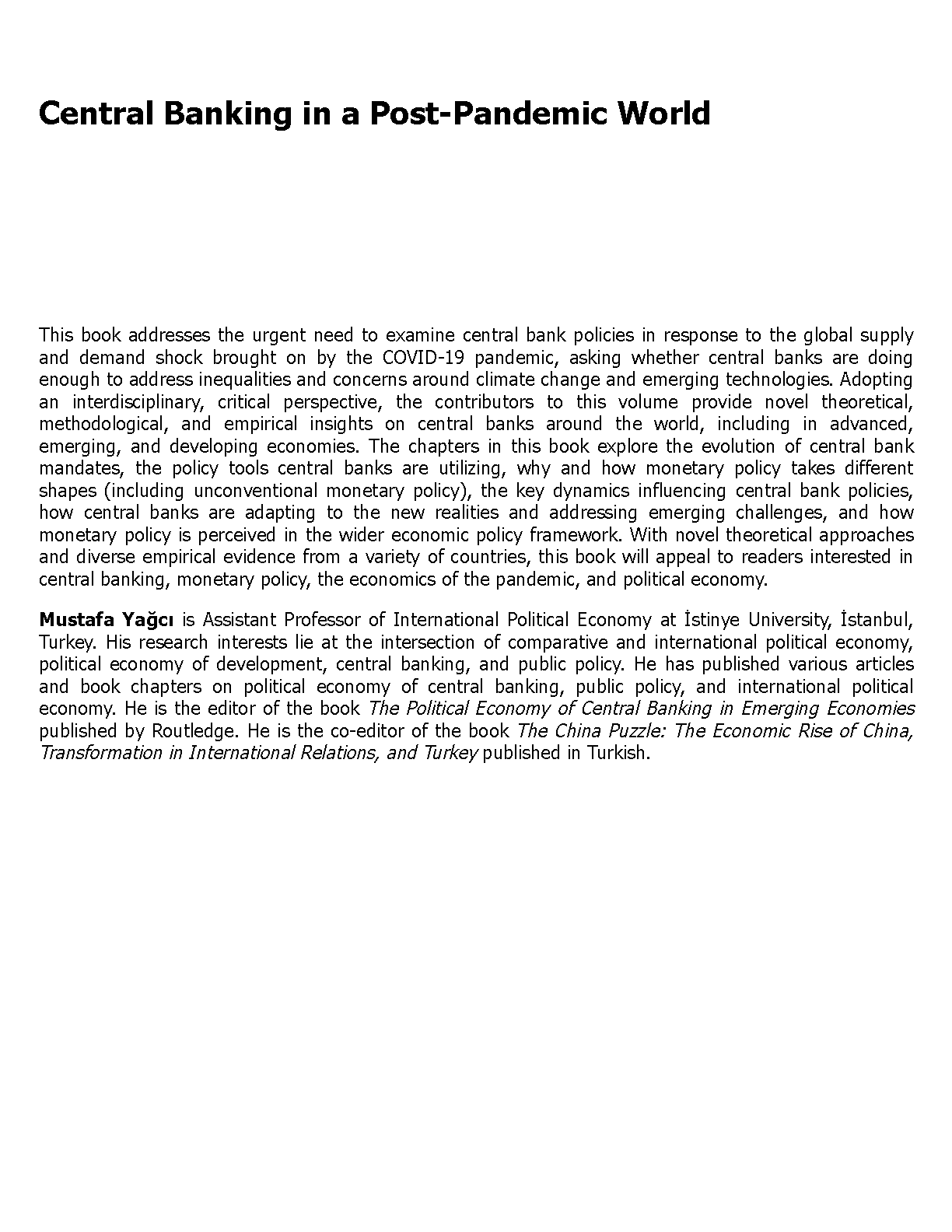 Central Banking in a Post-Pandemic World: Challenges, Opportunities, and Dilemmas - Edited by Mustafa Yağcı