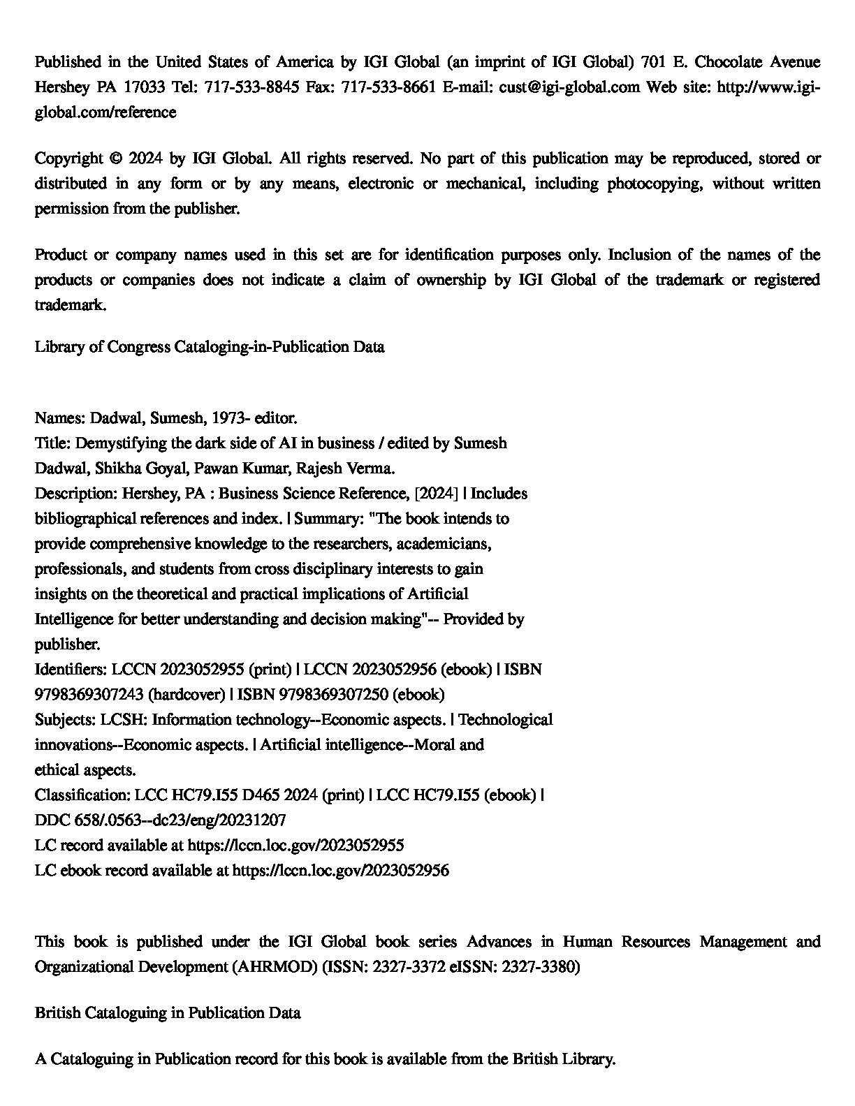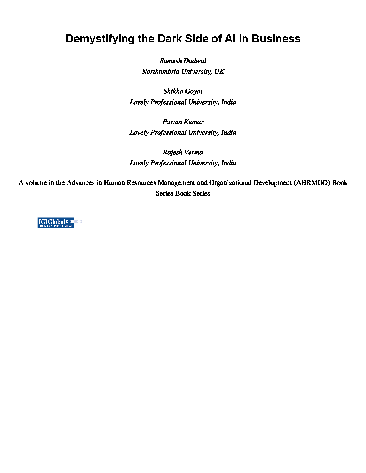Demystifying the Dark Side of AI in Business by Sumesh Dadwal, Shikha Goyal, Pawan Kumar, and Rajesh Verma