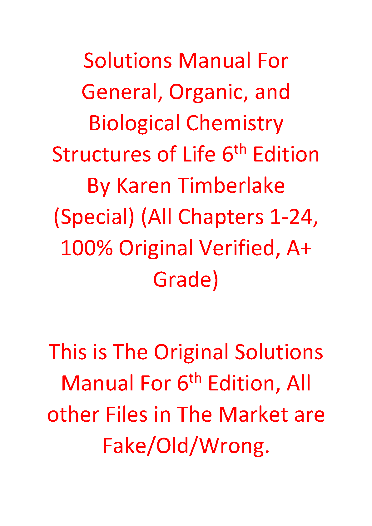 Structures of Life: General, Organic, and Biological Chemistry, 6th Edition Solutions Manual by Karen Timberlake - Ace Your Exam!