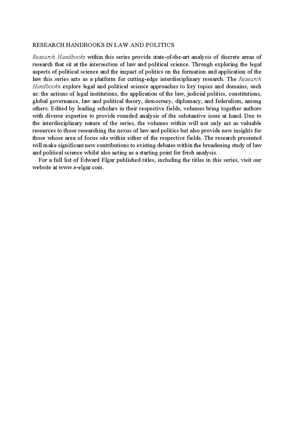 Research Handbook on the Politics of Constitutional Law by Mark Tushnet and Dimitry Kochenov