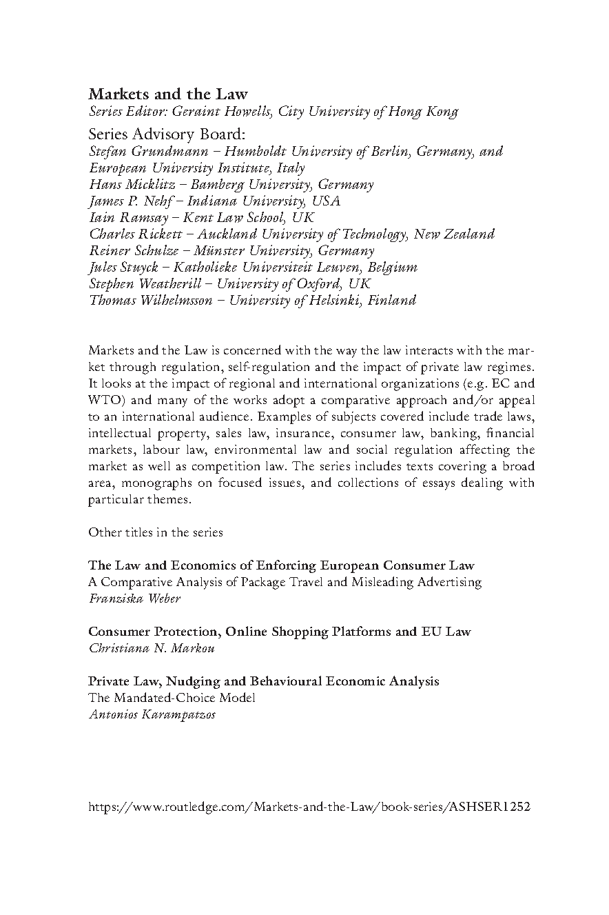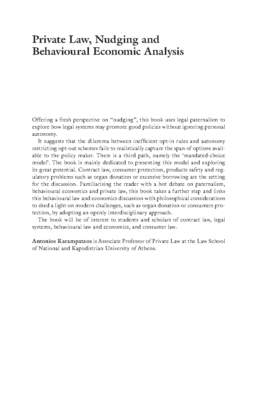 Private Law, Nudging and Behavioural Economic Analysis: The Mandated-Choice Model (Markets and the Law) by Antonios Karampatzos