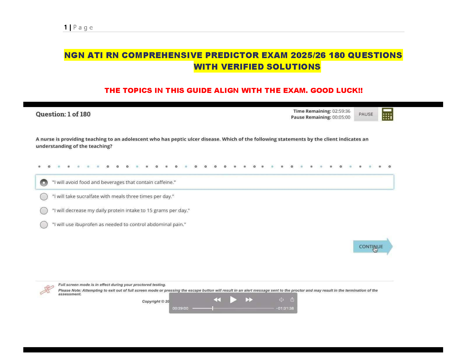 NGN ATI RN Comprehensive Predictor Exam 2025/26: 180 Questions with Verified Solutions