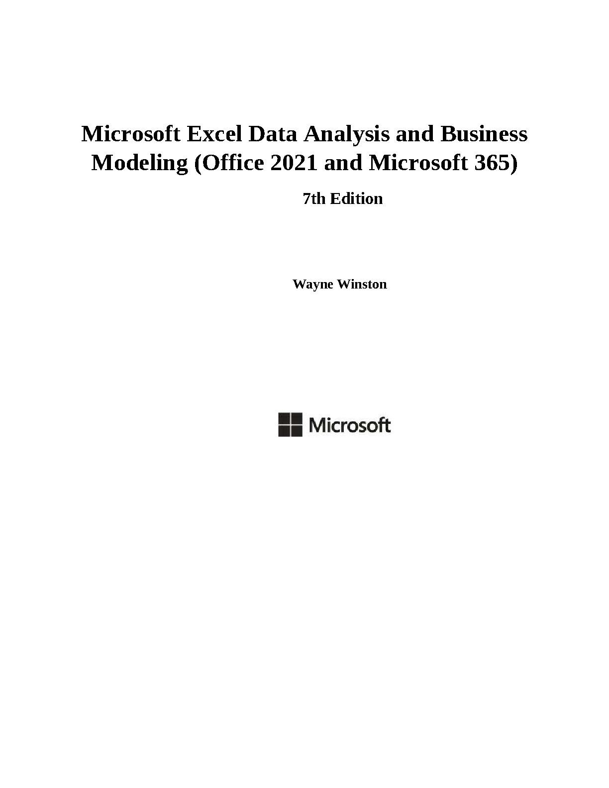 Microsoft Excel Data Analysis and Business Modeling (Office 2021 and Microsoft 365) 7th Edition by Wayne Winston, Michael R. Flynn, and S. Christian Albright