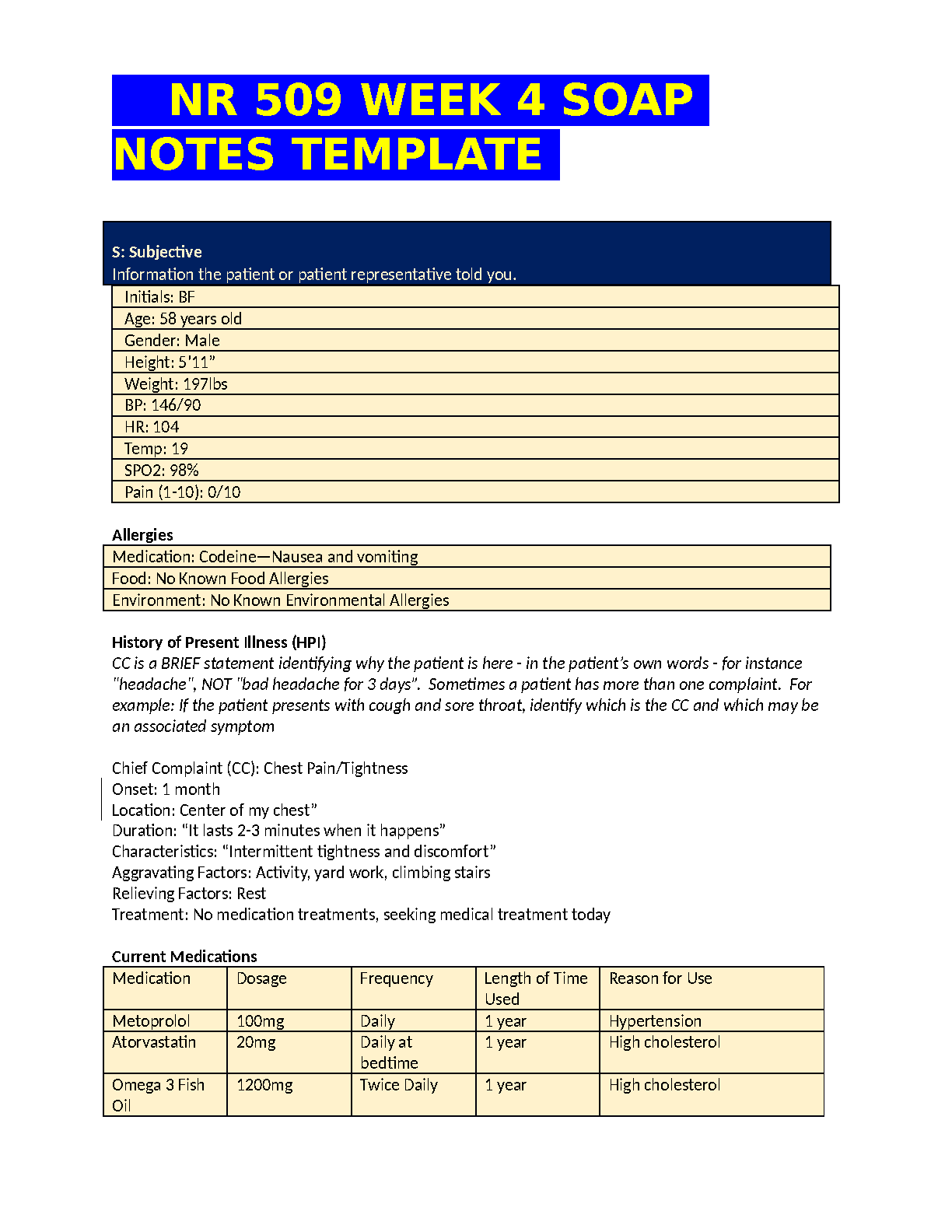 NR 509 WEEK 4 SOAP NOTES TEMPLATE. LATEST UPDATED VERSION