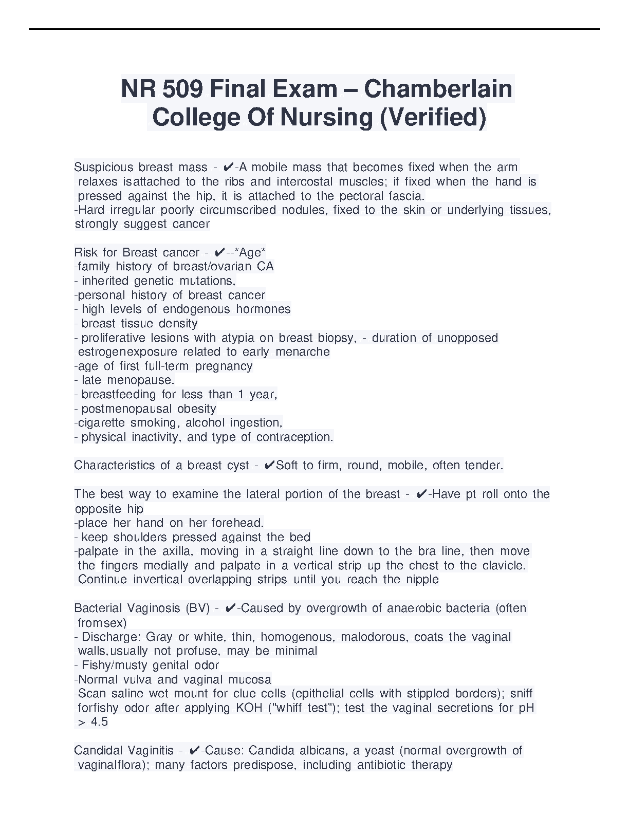 NR 509 Final Exam Chamberlain College Of Nursing (100%Verified)