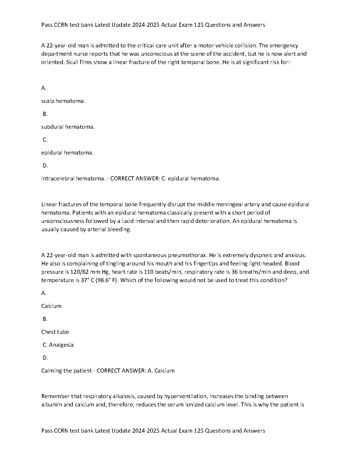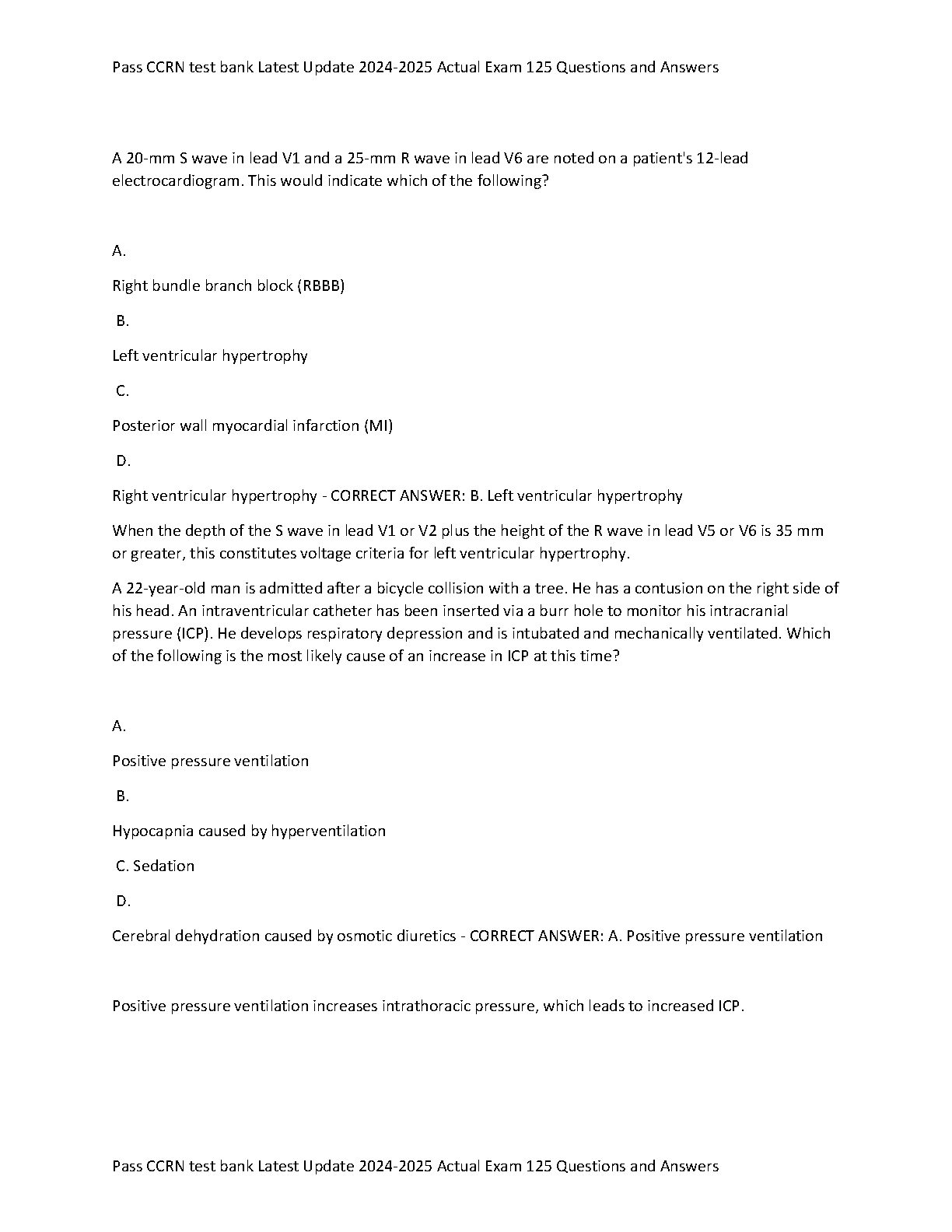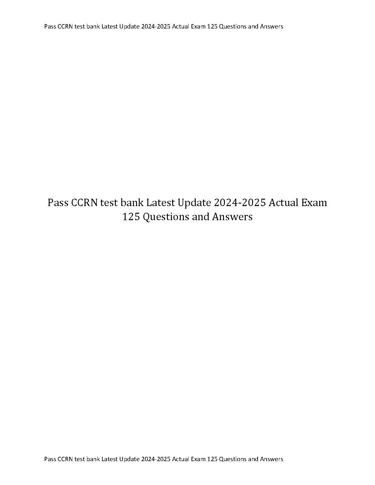 2024-2025 CCRN Exam Prep: 125 Questions & Answers - Pass CCRN Test Bank