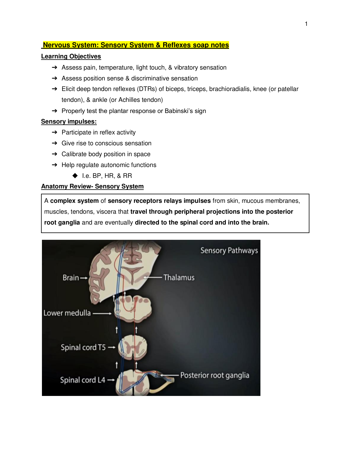 Nervous System: Sensory System & Reflexes soap notes. DOWNLOAD on www.hackedexams.com INSTANTLY.