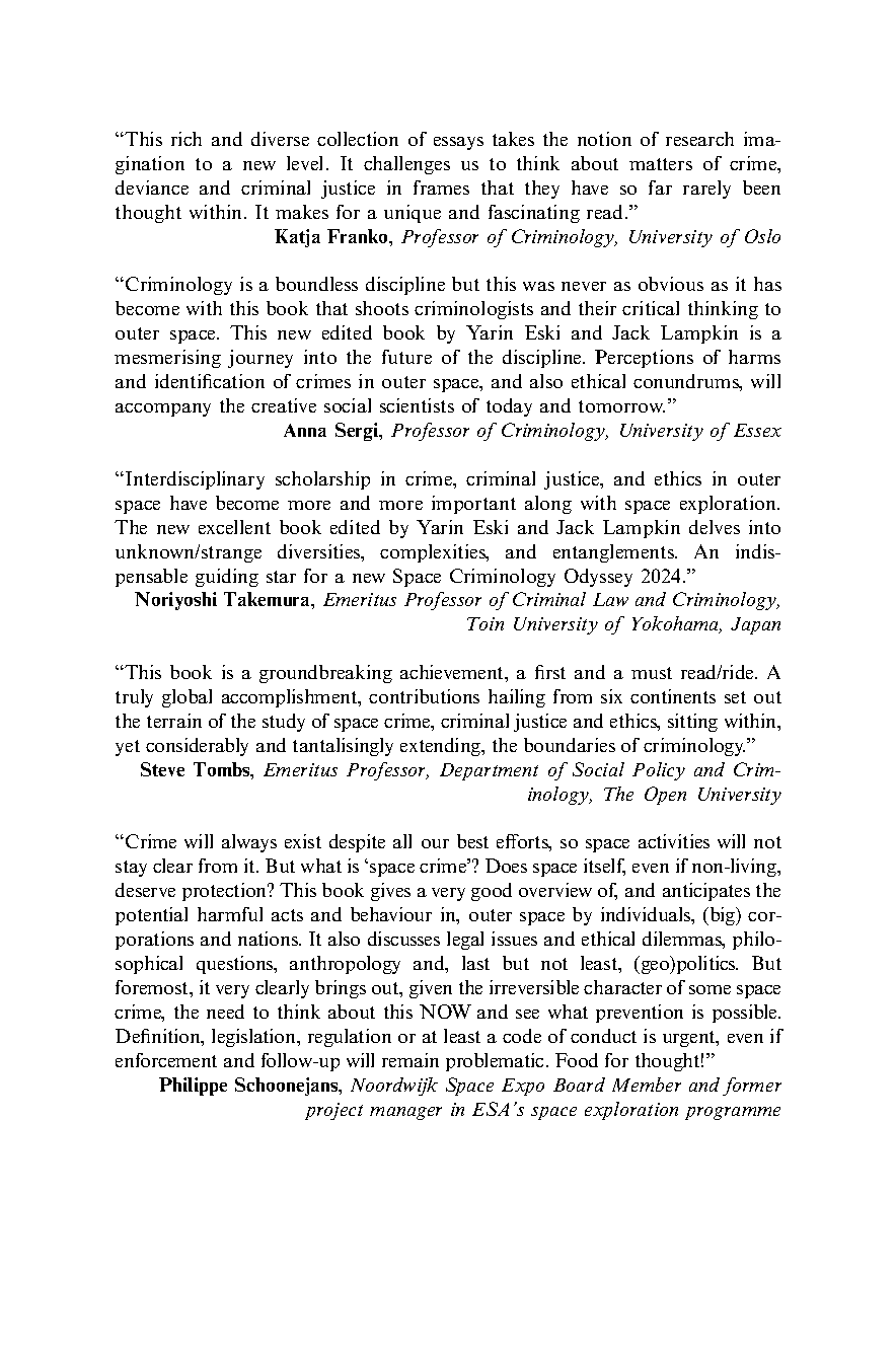 Crime, Criminal Justice, and Ethics in Outer Space: International Perspectives - Edited by Yarin Eski and Jack Lampkin