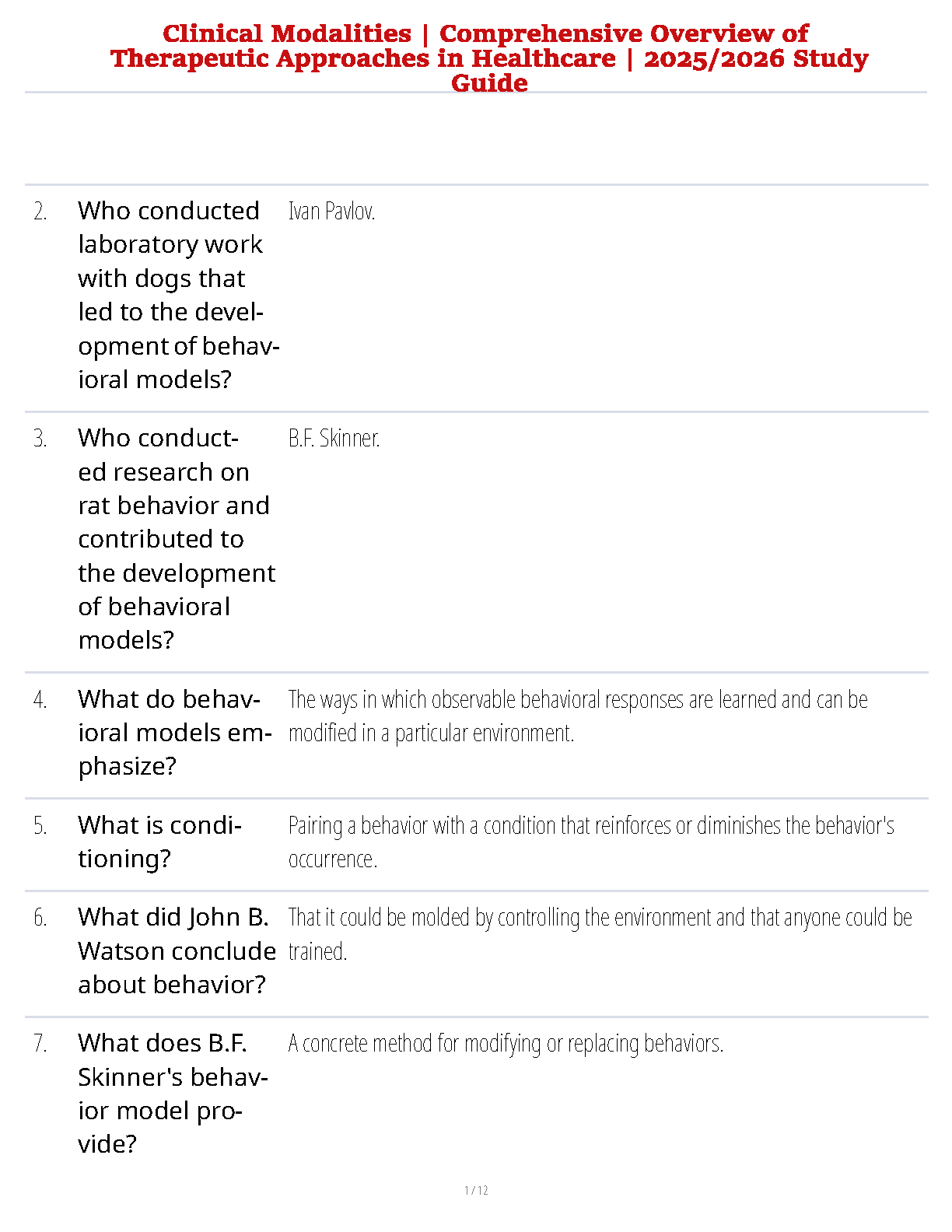 Master clinical modalities with this 2025/2026 study guide, offering a comprehensive overview of therapeutic approaches in healthcare. This resource provides clear explanations and examples to help you understand key concepts and ace your exams on the first try, avoiding resits. Developed by leading experts, including the contributions of Ivan Pavlov and B.F. Skinner, it ensures your success.