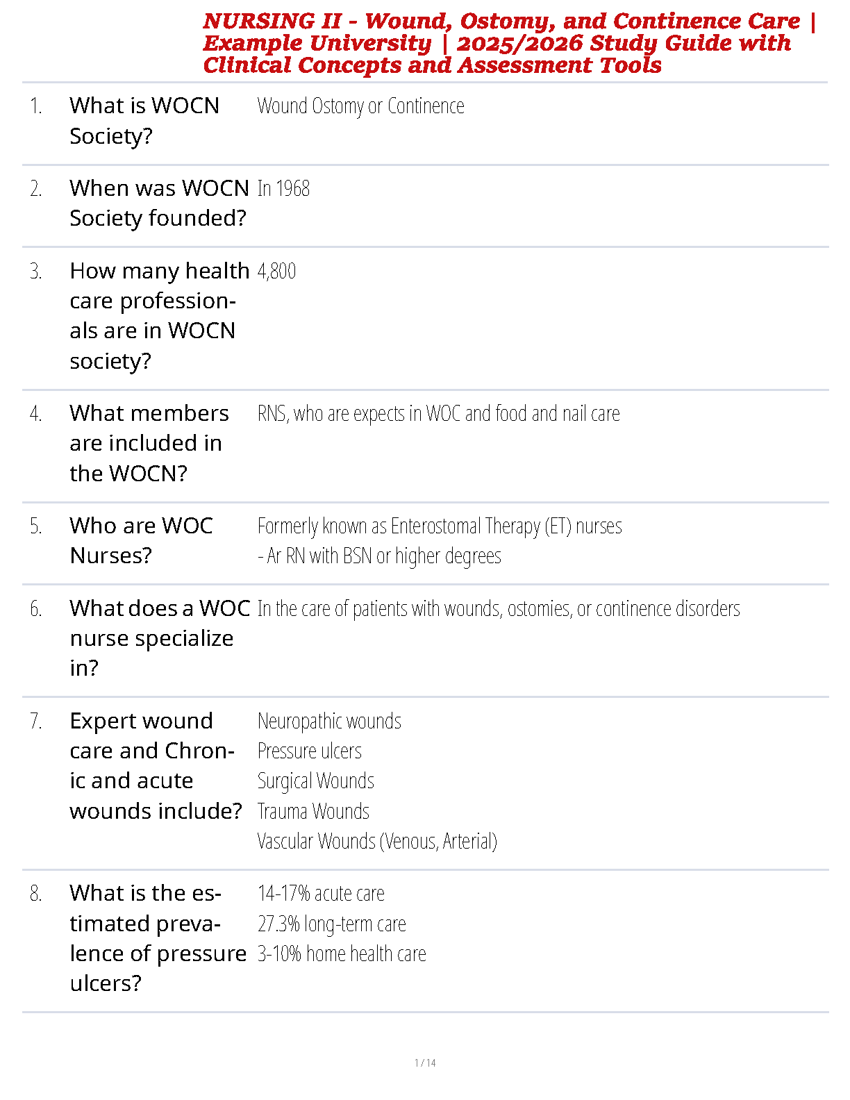 Nursing II - Wound, Ostomy, and Continence Care Study Guide: 2025-2026 Edition - Example University