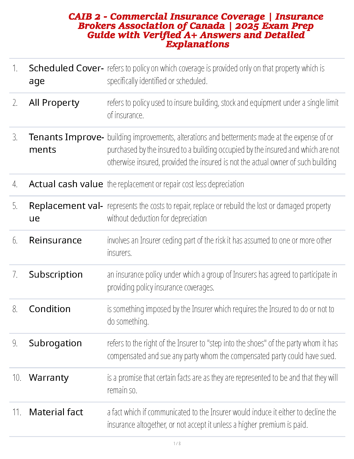 CAIB 2 - Commercial Insurance Coverage 2025 Exam Prep Guide by Insurance Brokers Association of Canada: Verified A+ Answers and Detailed Explanations