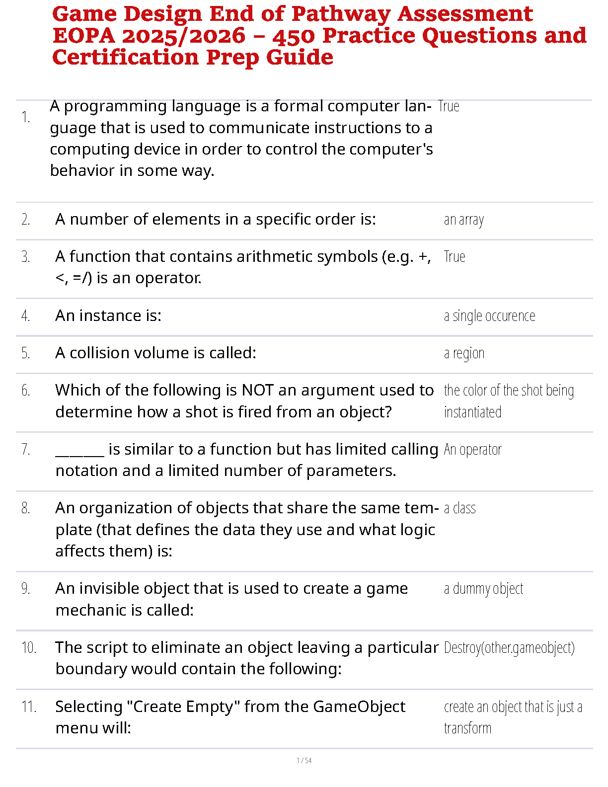 Ace your EOPA 2025/2026 Game Design certification exam on the first try with this comprehensive prep guide. This resource includes 450 practice questions covering key concepts, ensuring you're fully prepared for exam day and avoiding costly resits. Boost your confidence and master game design principles.