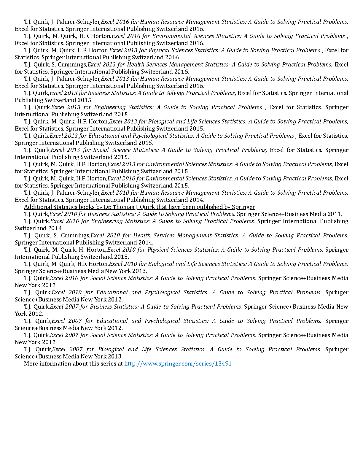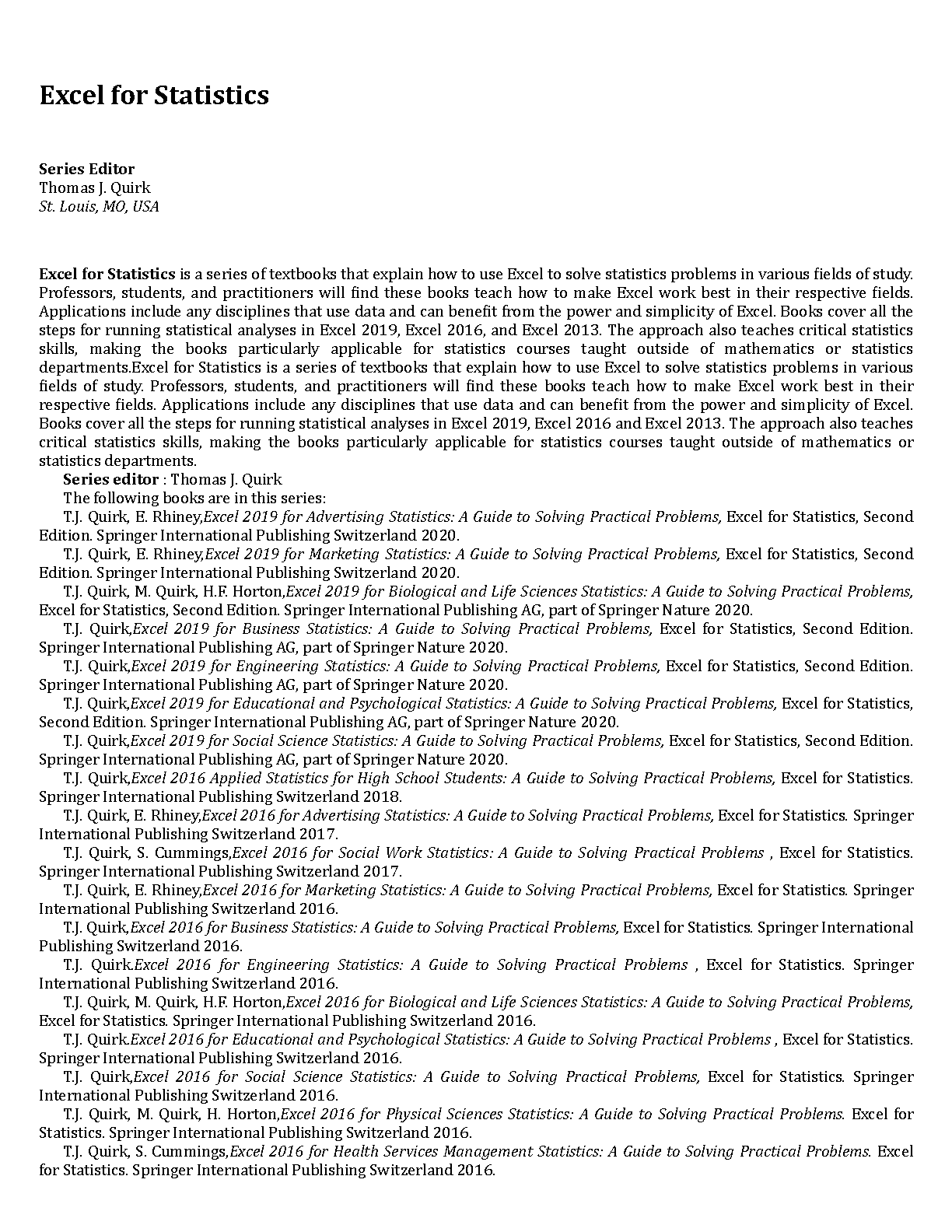 Excel 2019 for Business Statistics: A Guide to Solving Practical Problems, Second Edition by Thomas J. Quirk