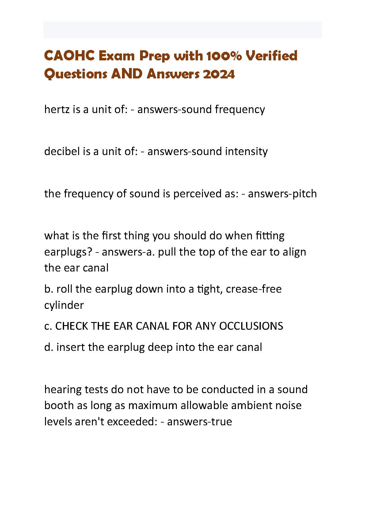 CAOHC Exam Prep 2024: 100% Verified Questions and Answers for First-Time Pass