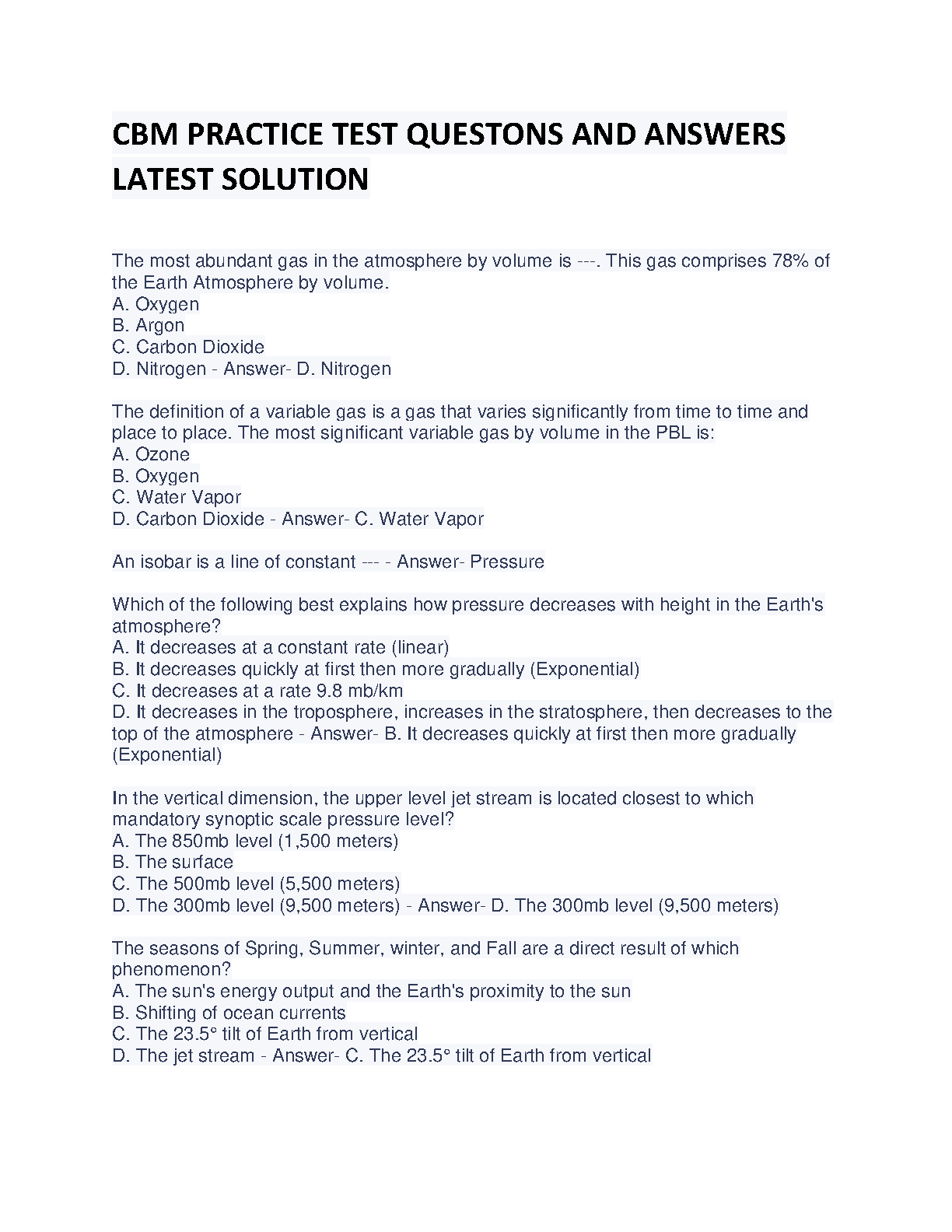 Prepare for your CBM exam with this comprehensive practice test featuring questions and answers. This latest 2024/2025 edition is designed to help students pass their exams on the first attempt, avoiding costly resits. Master key concepts and boost your confidence before exam day!