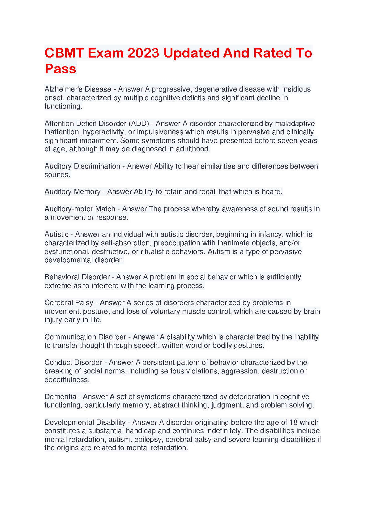 Ace your CBMT exam on the first attempt with this updated 2023 study guide. This resource provides clear explanations and answers for key concepts, helping you avoid costly resits and achieve exam success. Perfect for students aiming for a strong understanding and high score.